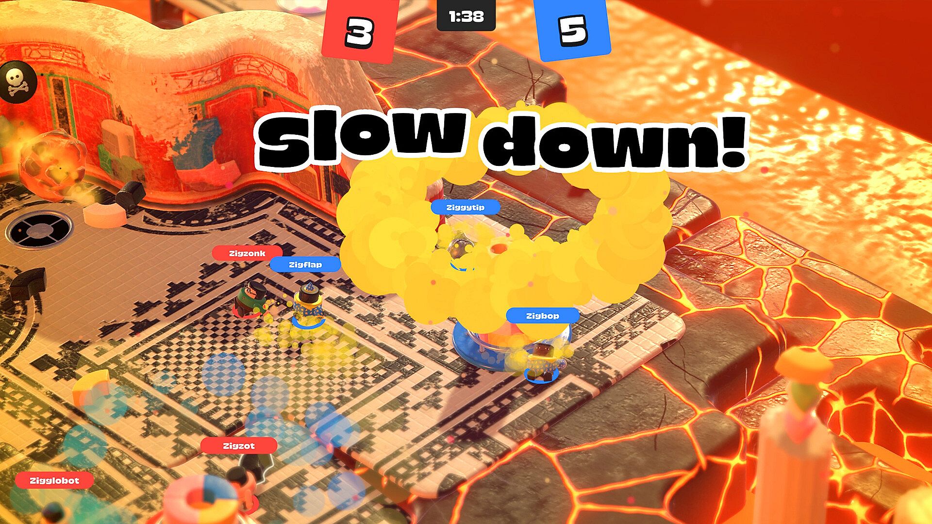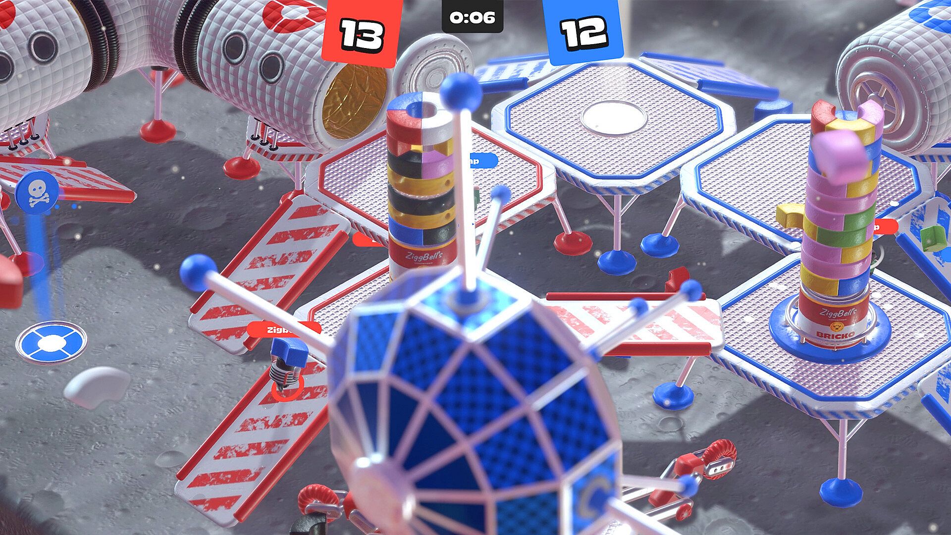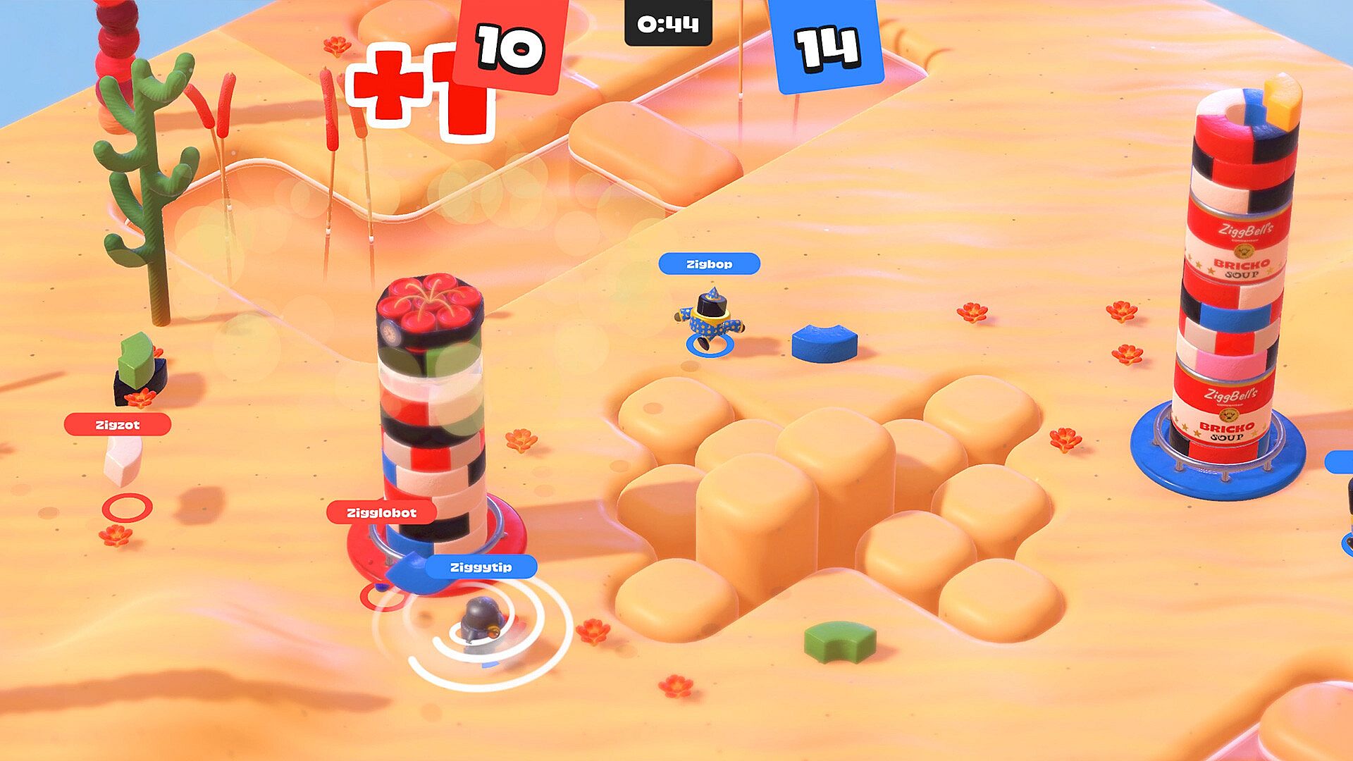 Zigglox plays with a controller or a keyboard. The main objective is to stack more colored bricks than your opponents to get more points.