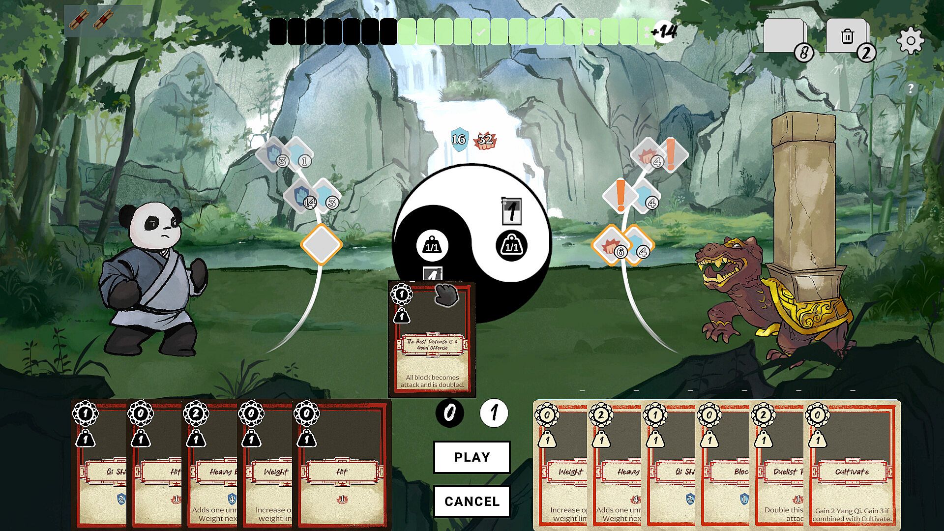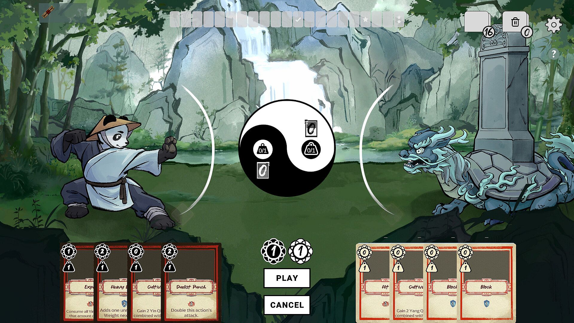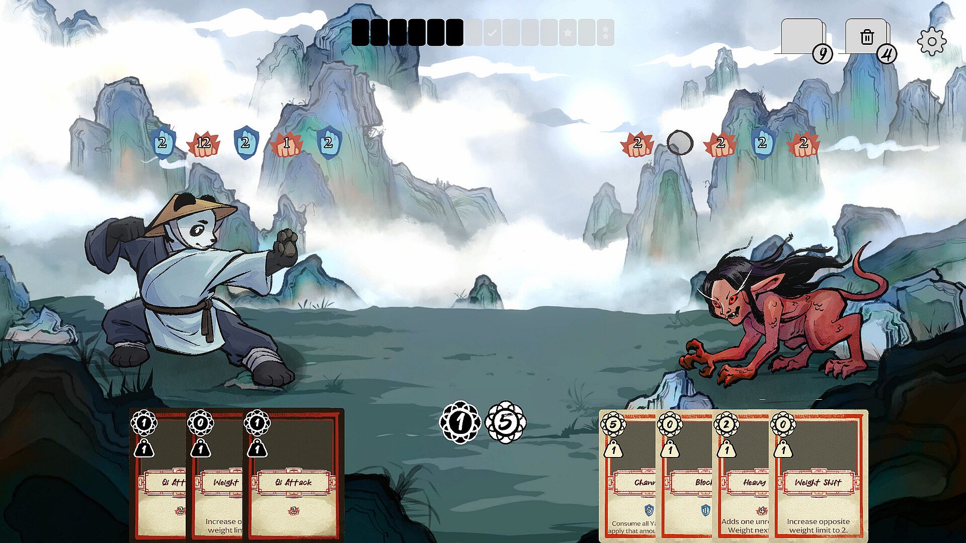 In order to prove themself, Panda practices the Dual Hands System, allowing them to utilise two card hands at once to create power synergies, unlocking a wide array of abilities and strategic decision-making. By mastering the art of managing Yin & Yang hands, Panda can combine cards to improve synergy, enhancing their abilities and strategic combat against diverse Chinese-themed enemies and mythical creatures.