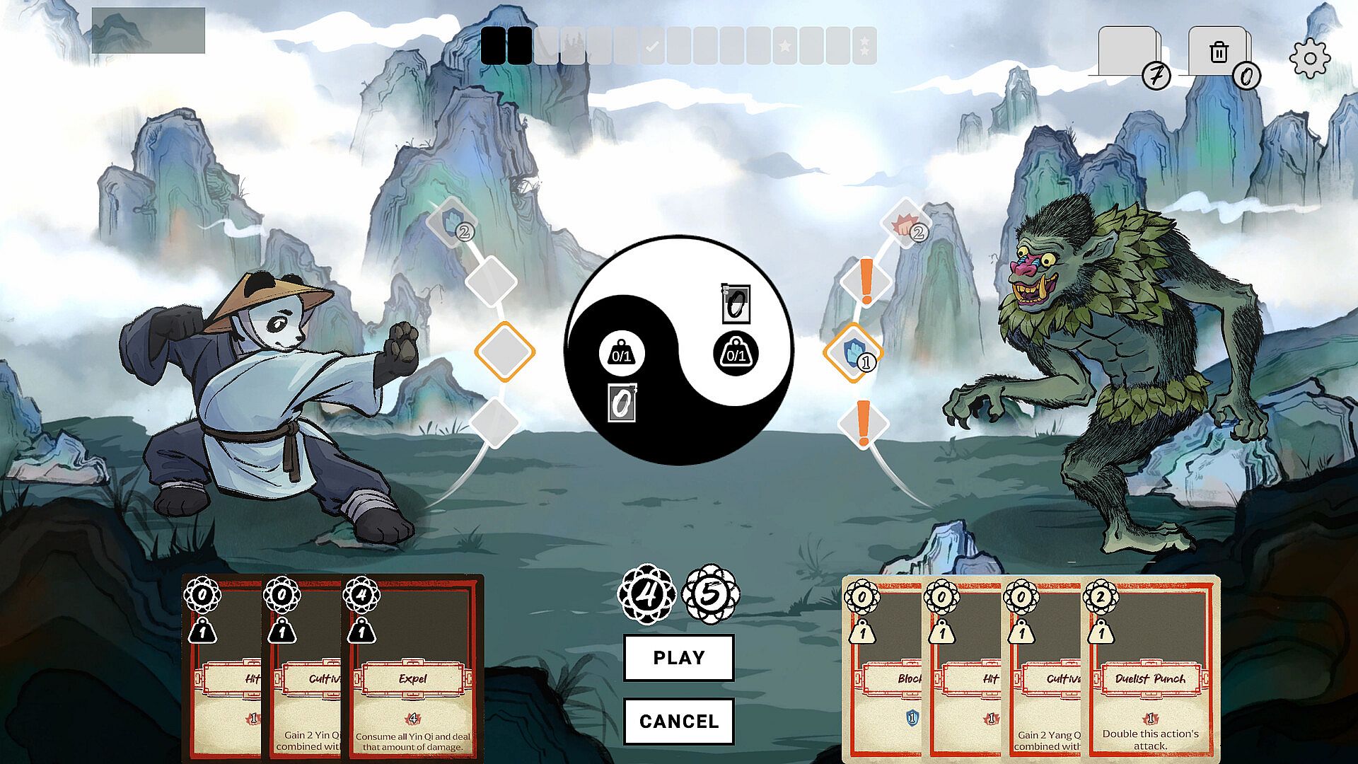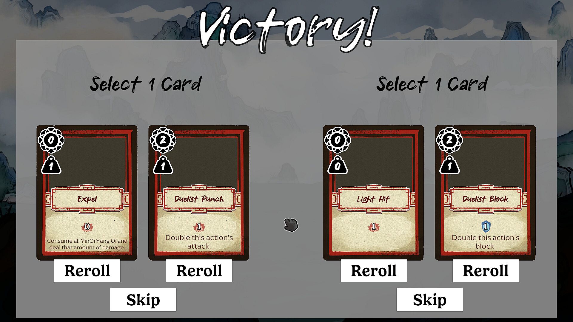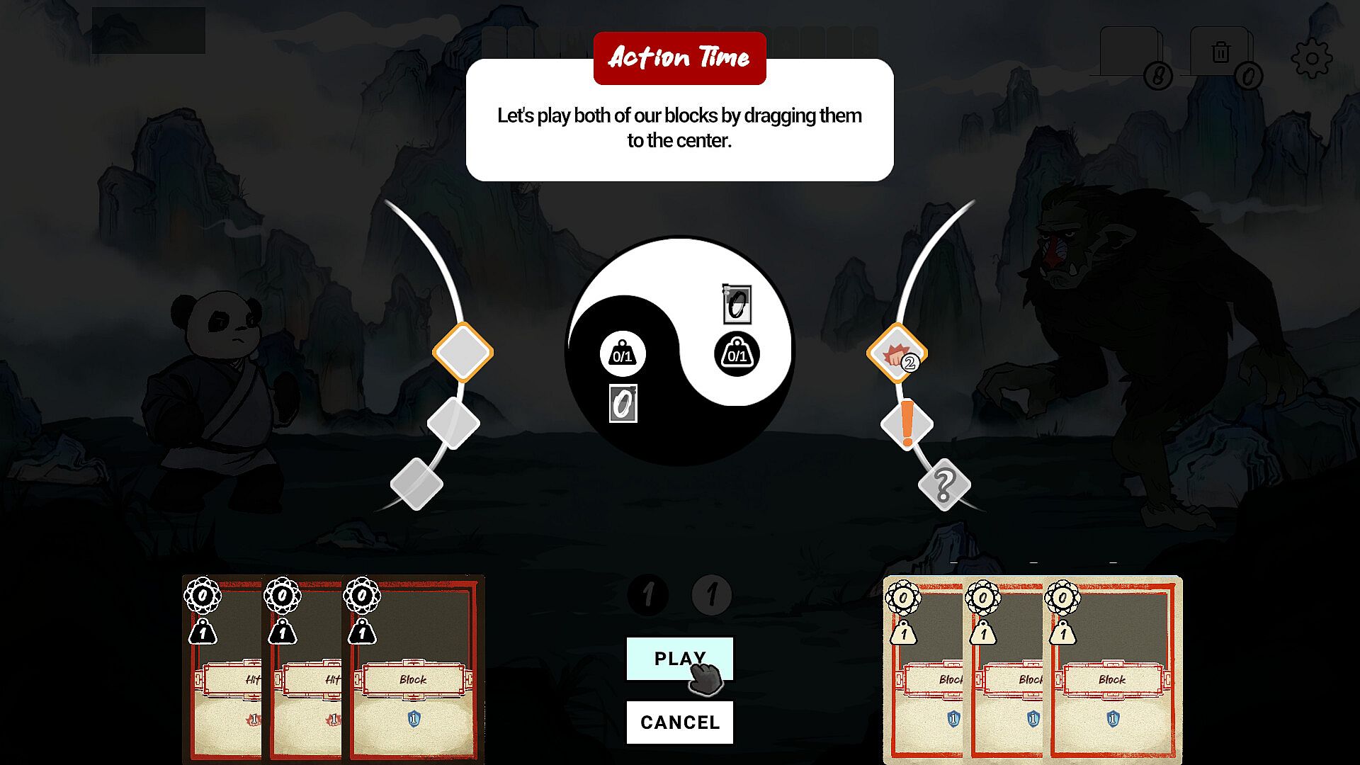 In order to prove themself, Panda practices the Dual Hands System, allowing them to utilise two card hands at once to create power synergies, unlocking a wide array of abilities and strategic decision-making. By mastering the art of managing Yin & Yang hands, Panda can combine cards to improve synergy, enhancing their abilities and strategic combat against diverse Chinese-themed enemies and mythical creatures.