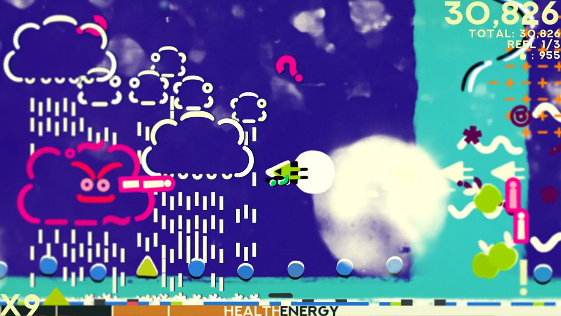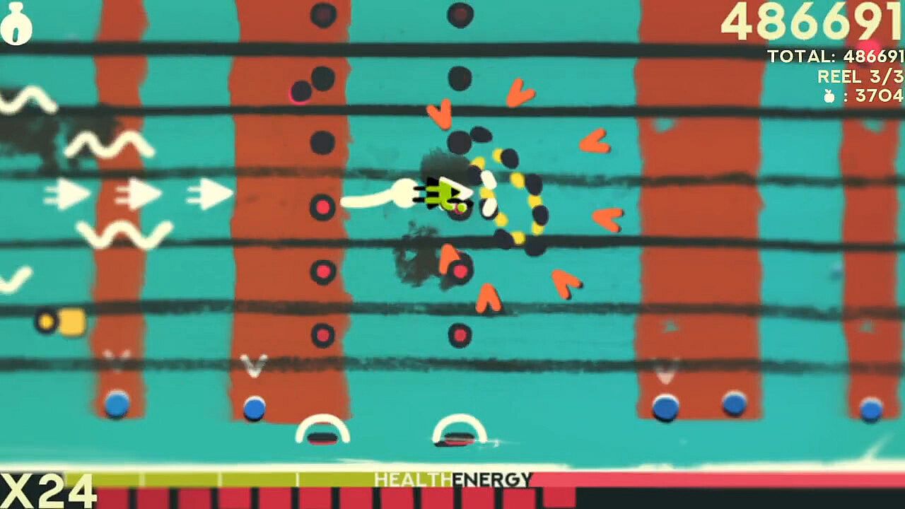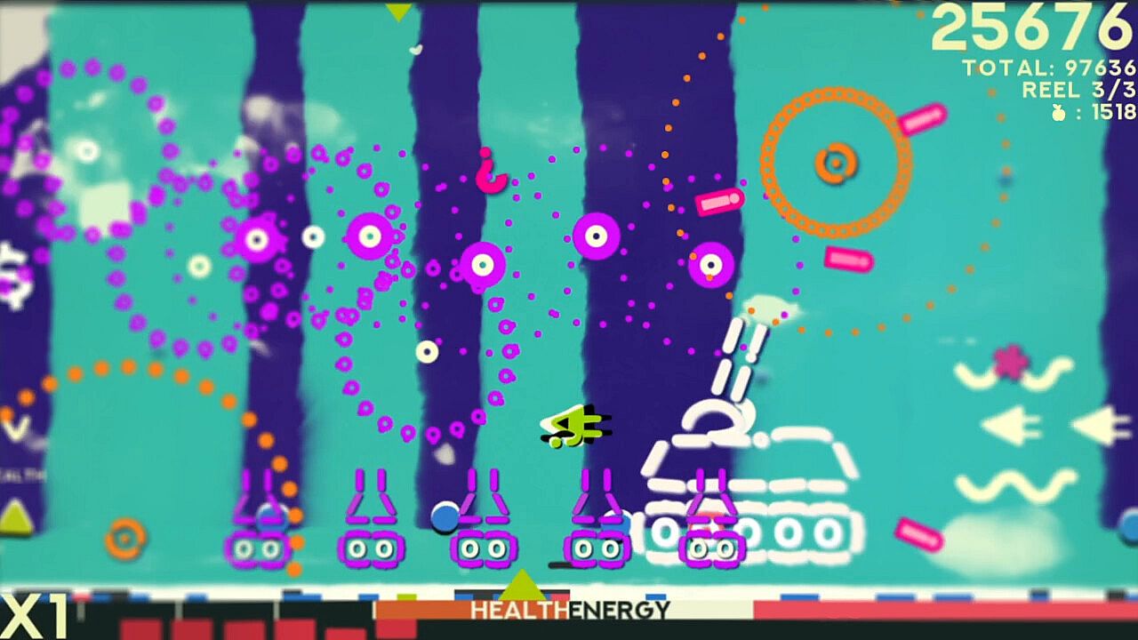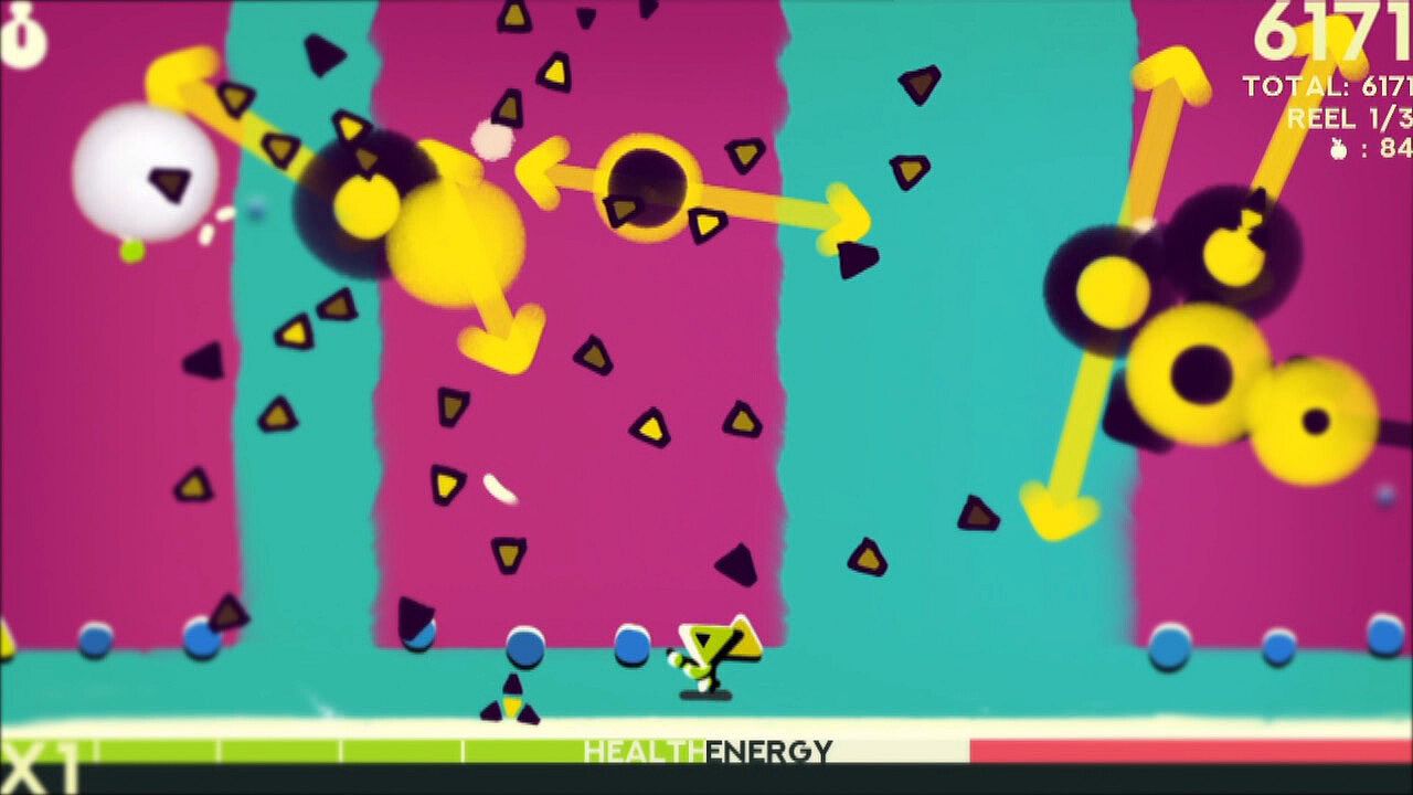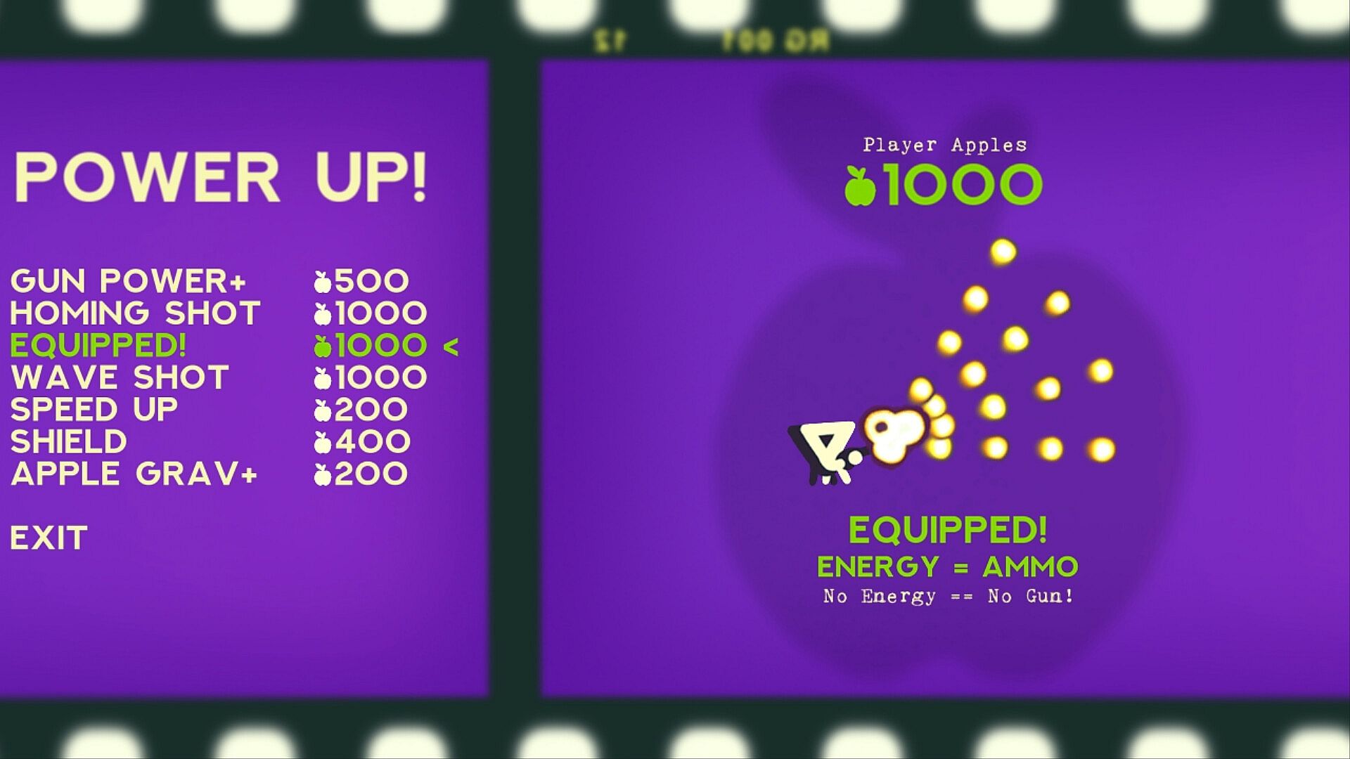 Collect Apples from fallen foes to spend on upgrades and weapons in between reels.