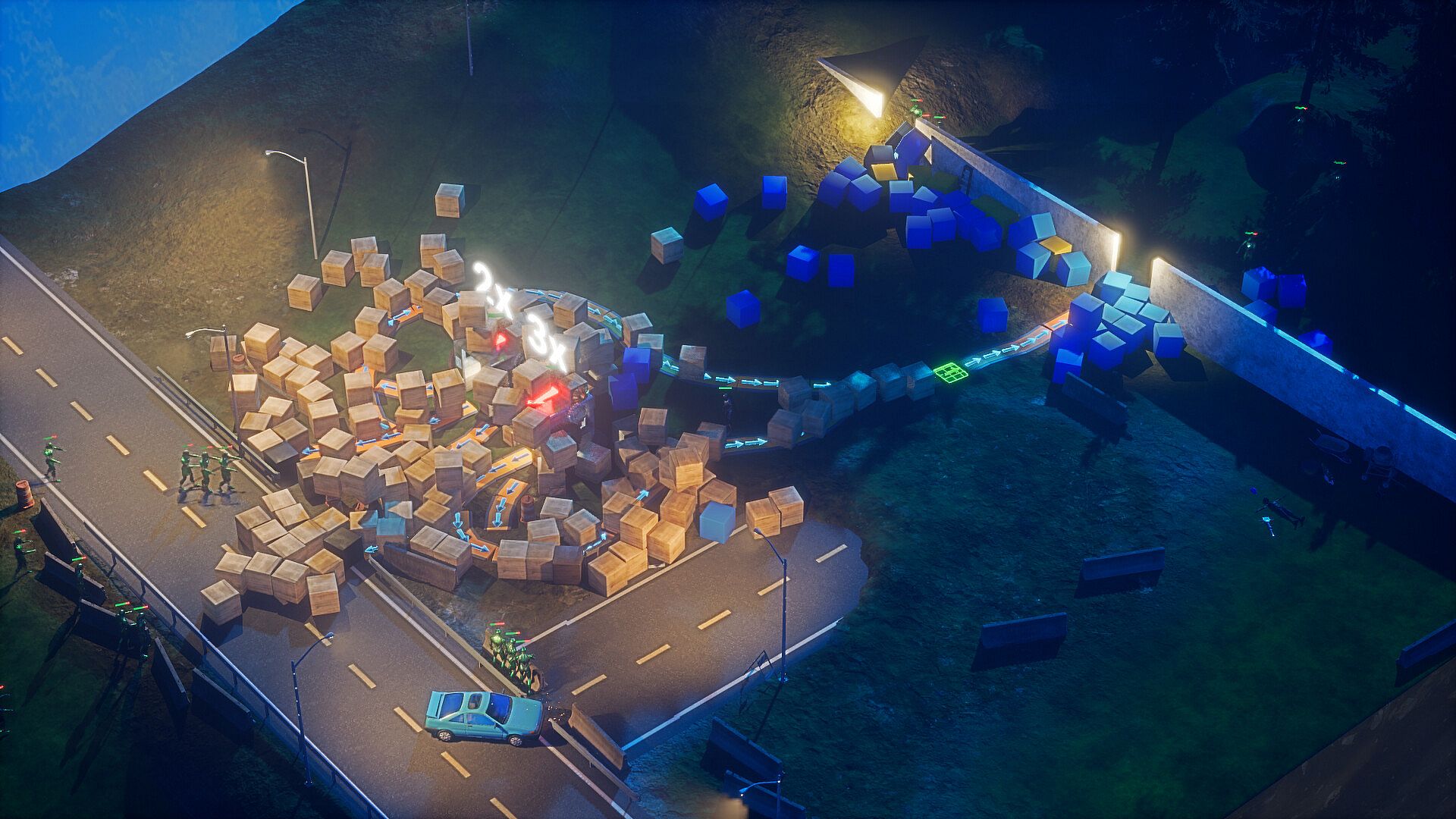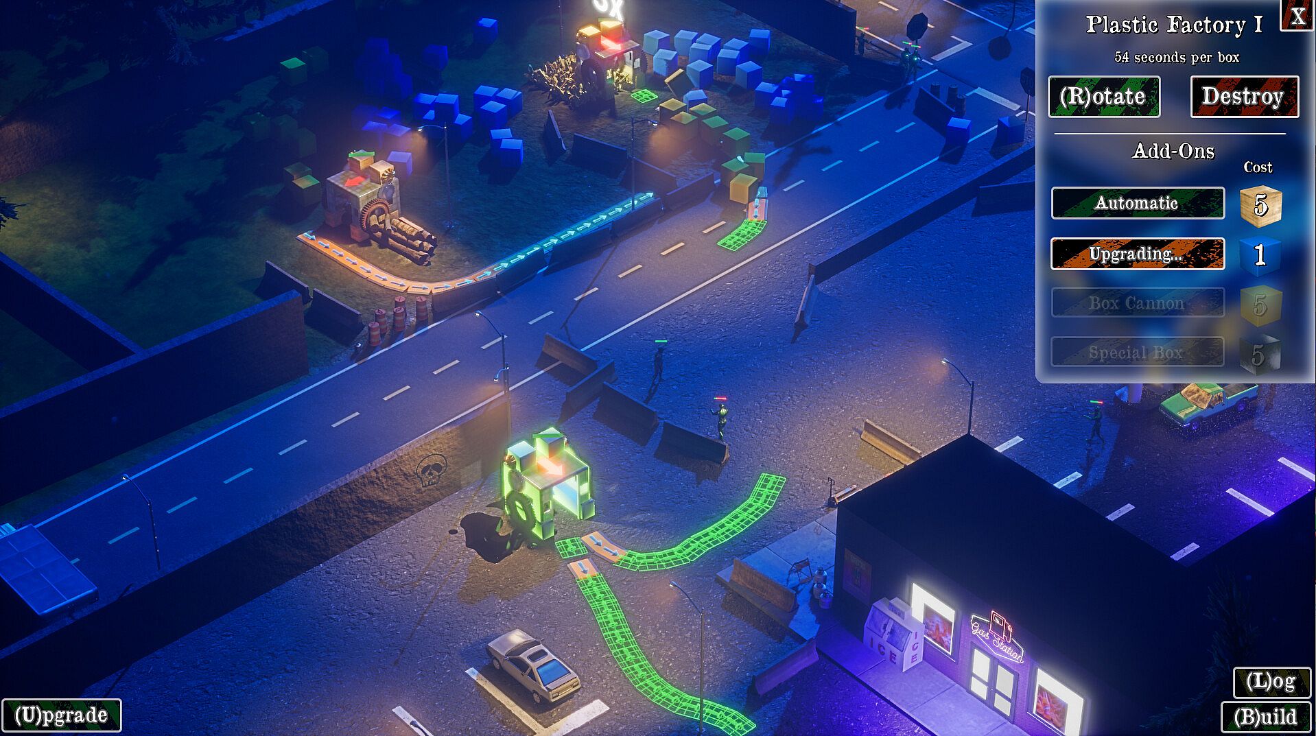 Alex is the new guy at the box warehouse, ending the day with a company dance party, but that night something goes horribly wrong! You and Alex defend against the zombie hoard by building walls of boxes from factories, with help from your rag-tag group of survivors.