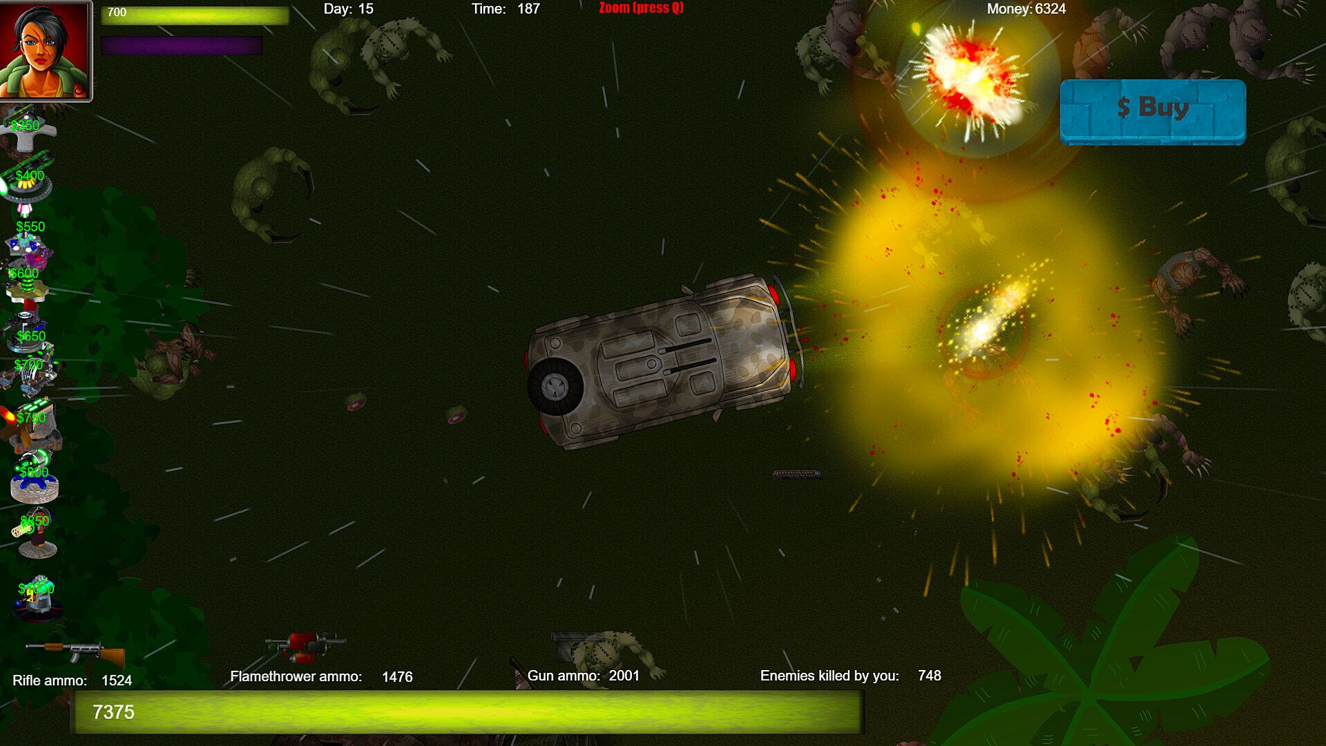You'll have access to a wide variety of weapons, vehicles, explosives, soldiers and turrets to help you in your battle against the undead. You'll need to carefully choose which items to buy and when to use them in order to survive the zombie hordes and emerge victorious. You'll also need to manage your resources wisely, as every decision you make can impact your chances of survival.