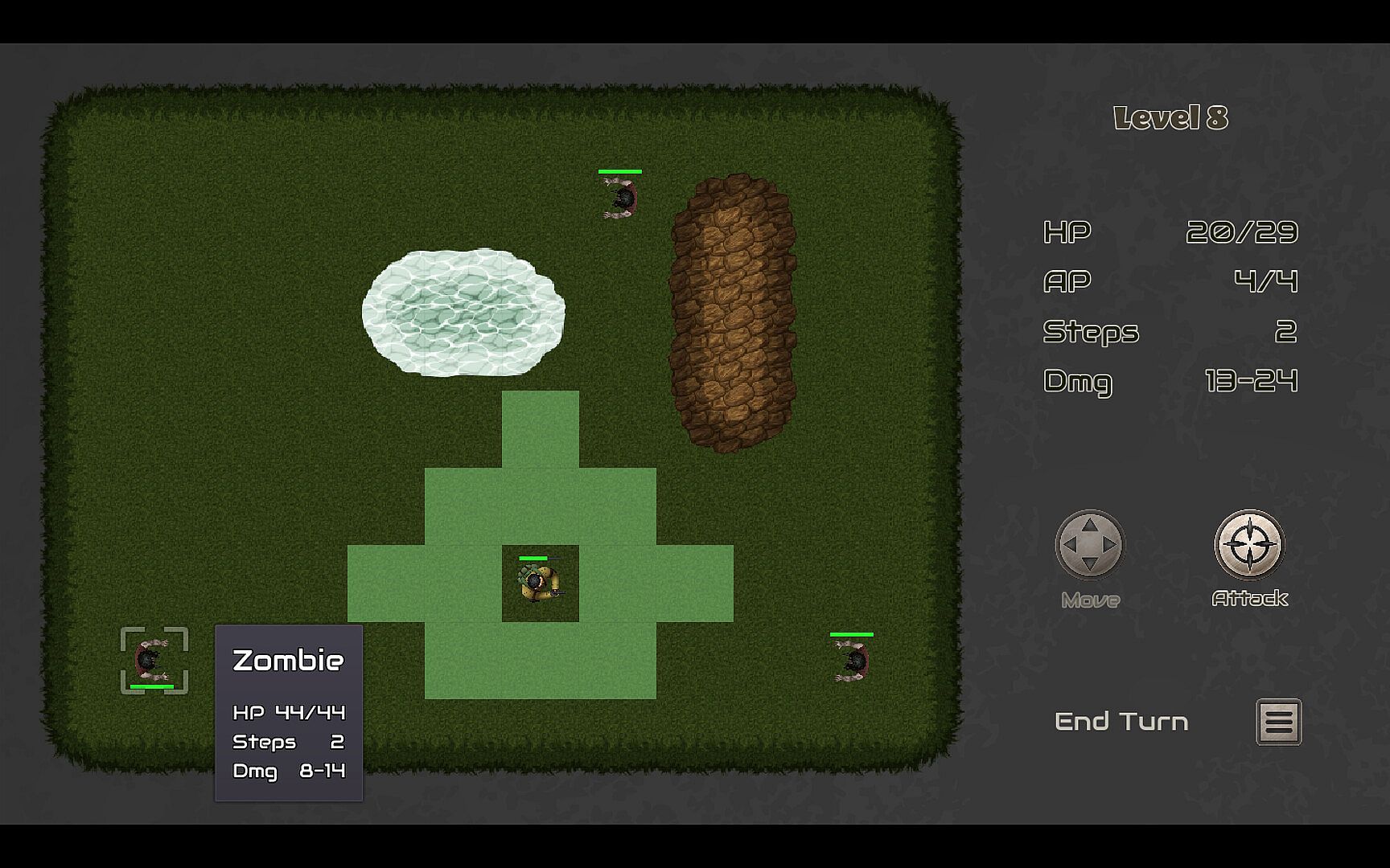 Step into a world overrun by the undead in this gripping turn-based tactical roguelike. As a survivor, you'll fight off groups of zombies using different weapons in strategically intense, fast-paced battles. Every victory brings the chance to choose reward that will enhance your character's abilities. Each level becomes progressively harder, pushing your tactical skills to the limit. Can you outsmart the undead and emerge victorious in this thrilling fight for survival?