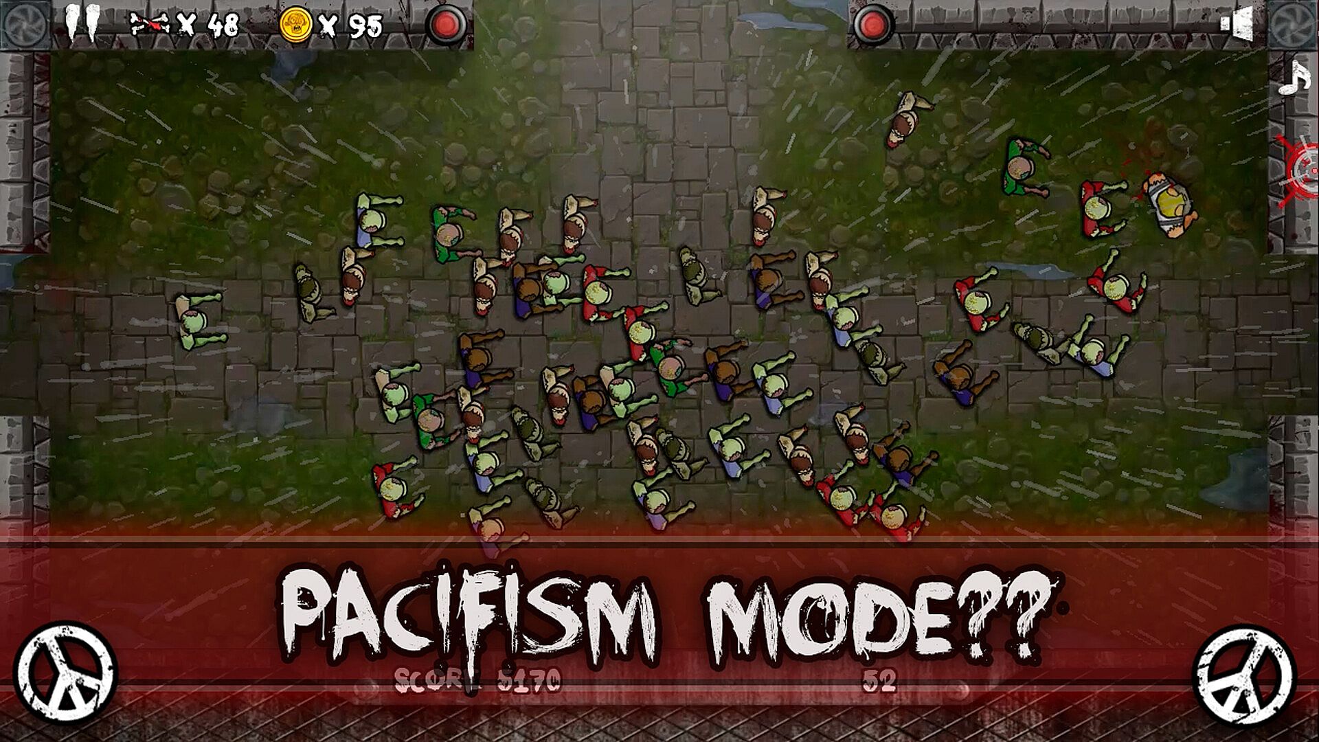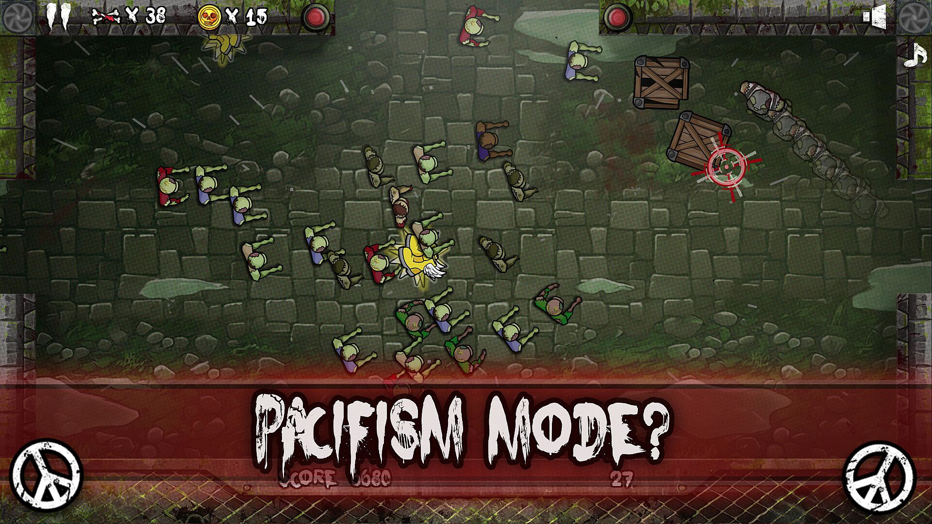 Can't handle zombie guts? Make the zombies work to each your guts in Pacifism Mode! No ammo. No weapons. Just you, a horde of zombies, and your sheer will to survive! Dodge, weave, and grab power-ups to stay alive as long as possible. Spoiler: you’re still doomed, but at least you’ll look cool trying!