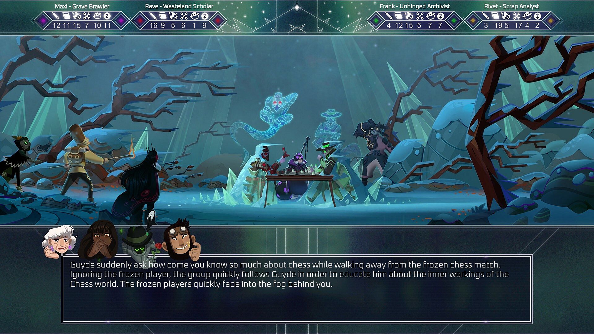 Choose 1 up to 4 of the indebted adventurers trying to escape their past mistakes which forces them out into the dangerous wasteland in hopes of clearing their debts.