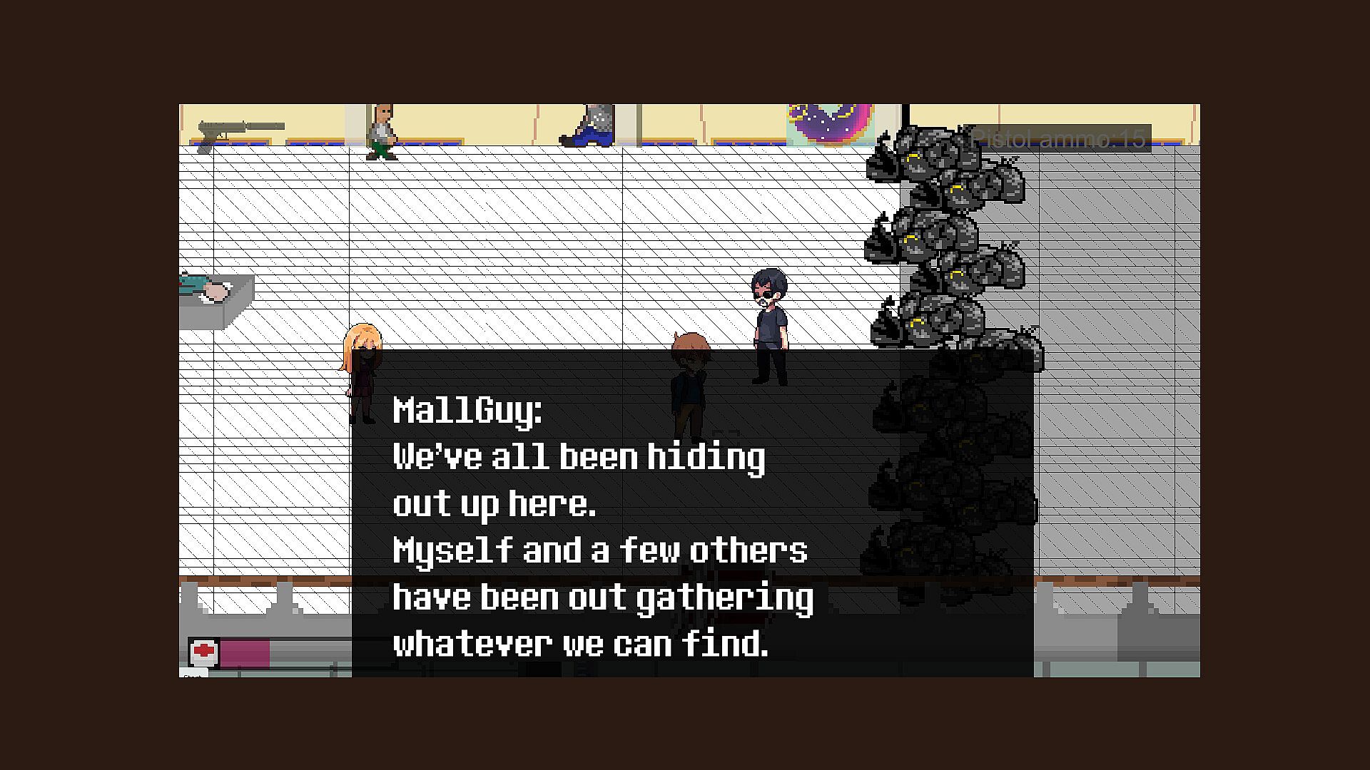 Zone B Korosu is a story-rich zombie adventure with a mix of side-scrolling combat, top-down exploration, interactive narrative scenes, and some classic SNES-style flair.