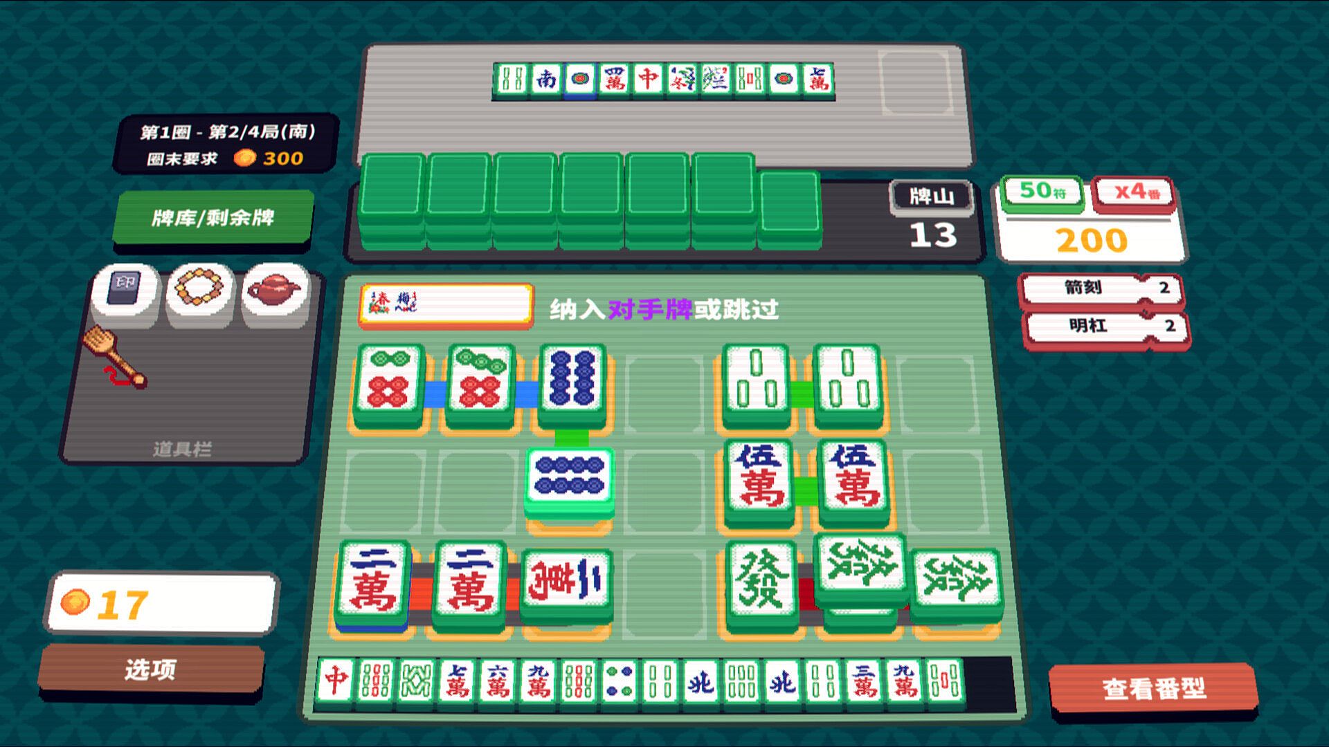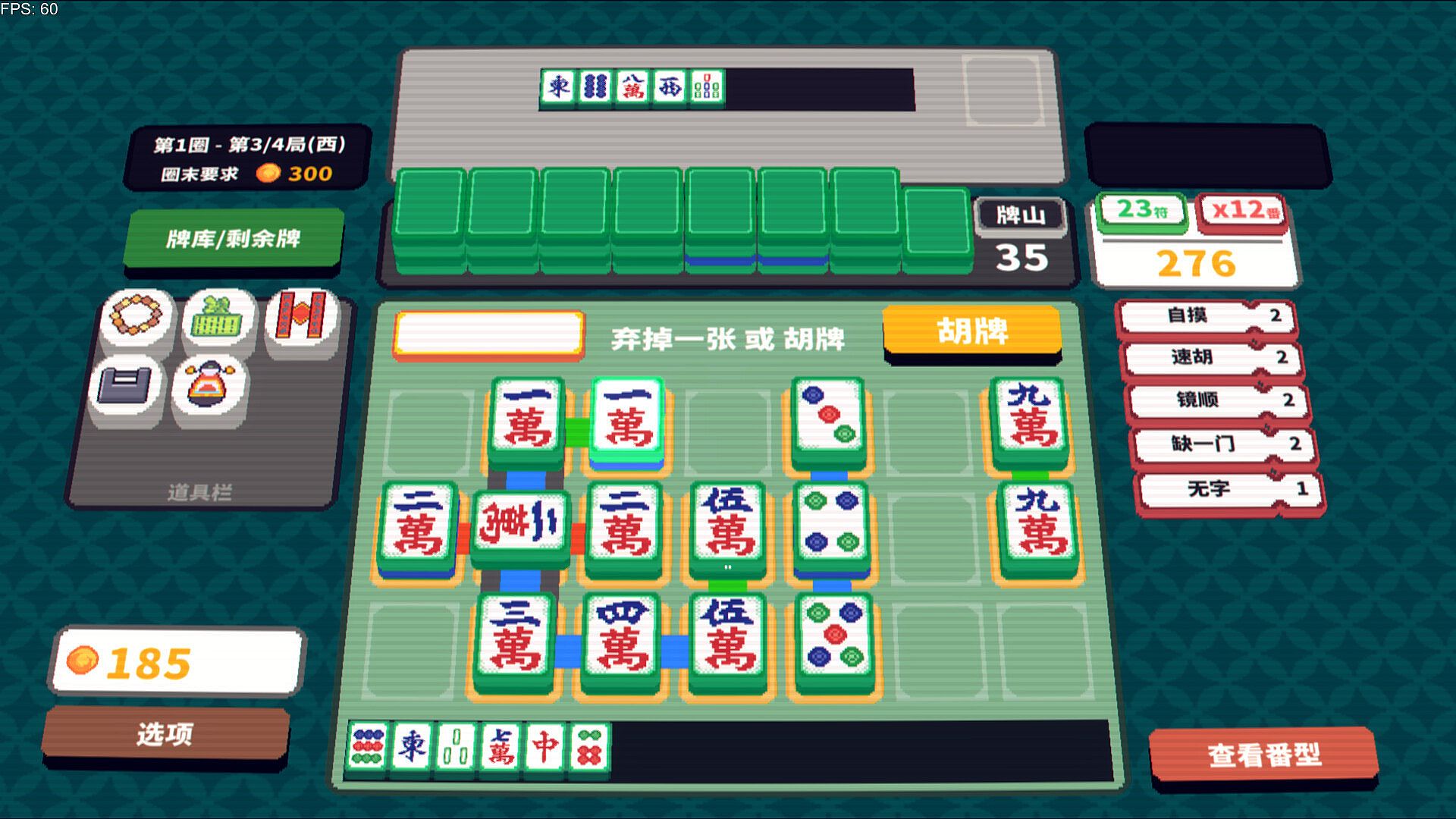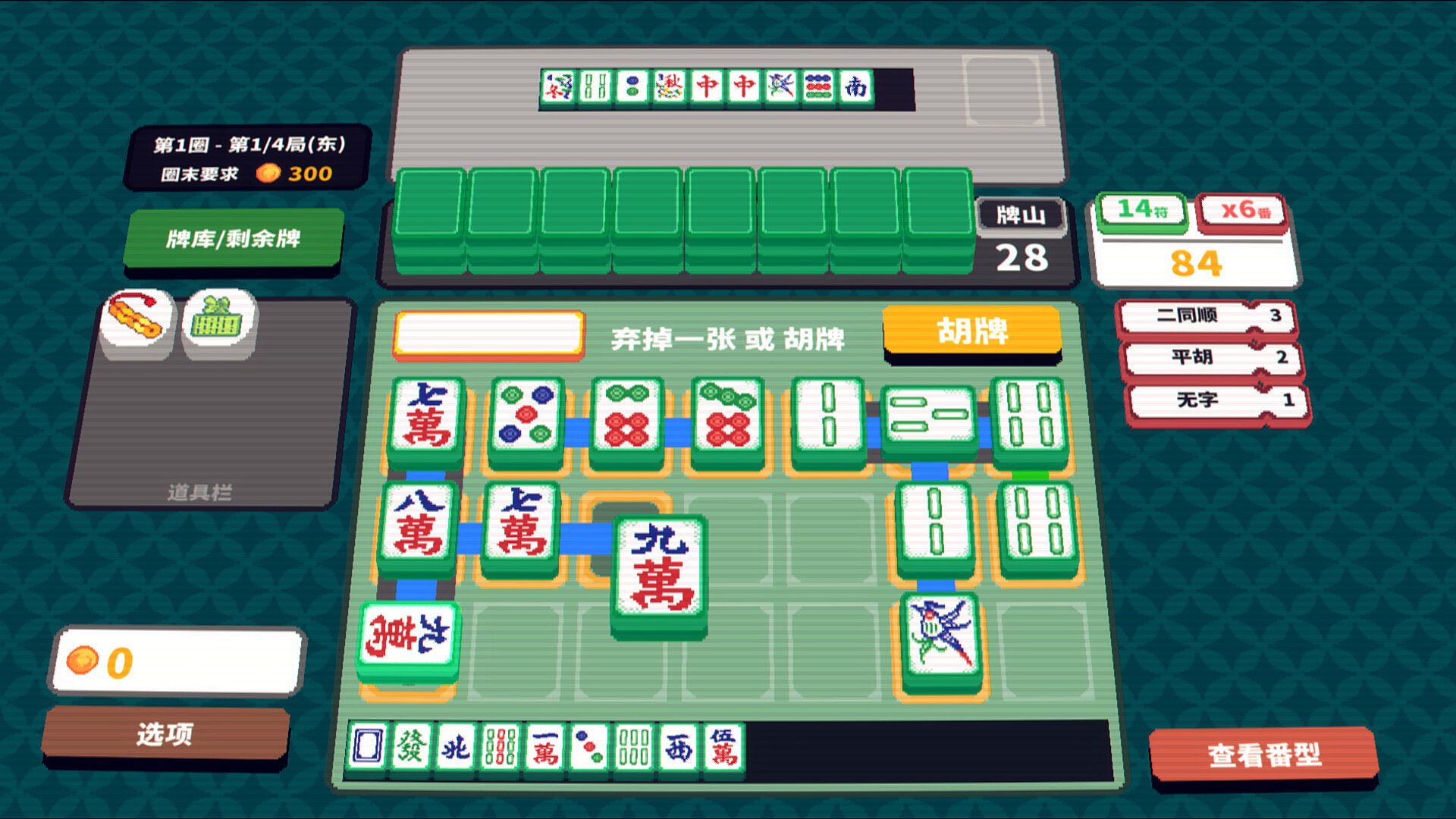 In Matrix Mahjong, flexibly arrange your tiles on the 3x7 table to achieve HU (a winning hand) in diverse ways, and multiply your earnings with a variety of FAN (scoring rules).