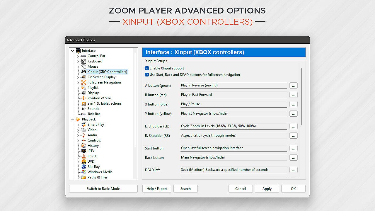 What about Control? If you're scared by long lists, skip to the next paragraph, otherwise know that Zoom Player can be controlled with a Remote Control app; a physical Remote Control; an XBOX controller; a mouse; the keyboard; using a PowerShell Script; Home Automation apps; over TCP/IP; WinAPI; through the Command line; and even with a web browser. Sorry for the long list, but the level of control and attention to detail I designed into Zoom Player is unmatched! Every key, click, swipe, roll and button can be customized to your preferences.