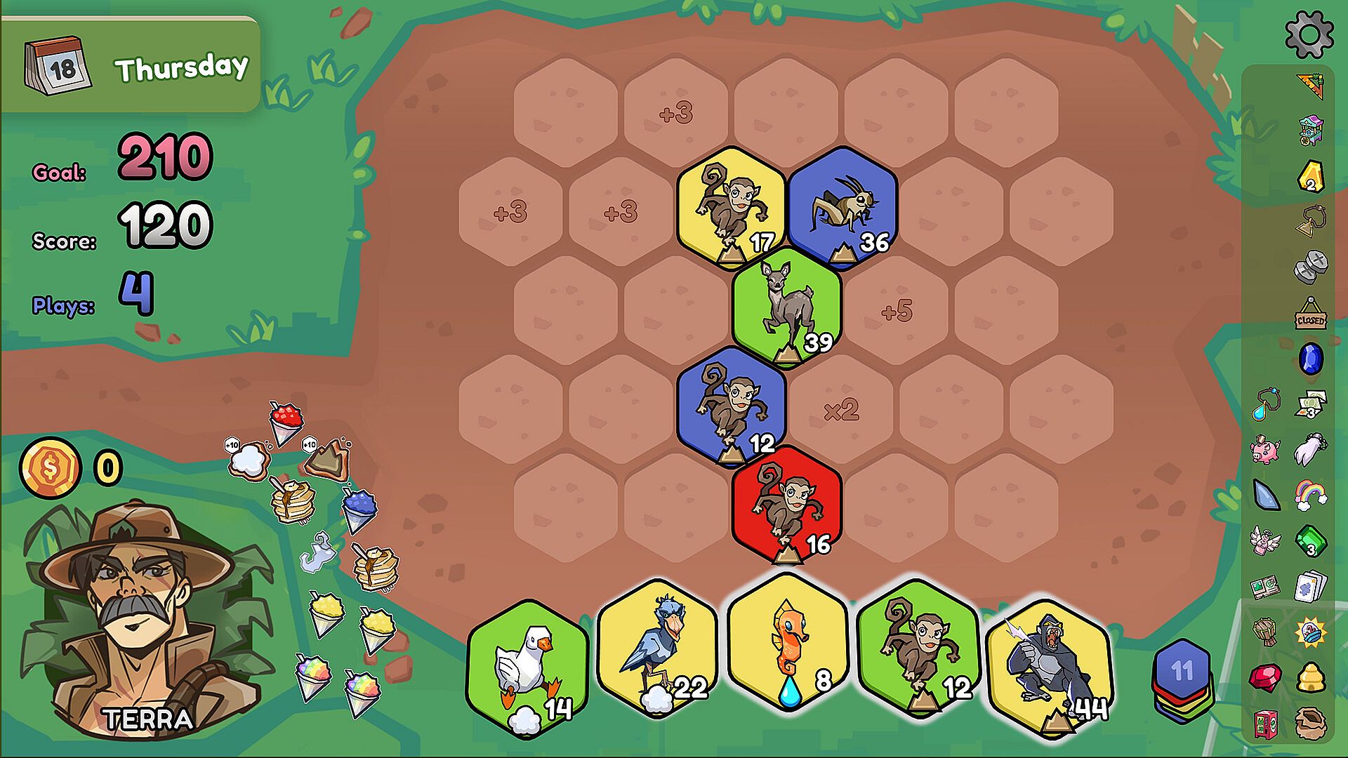 Upgrade animals using snacks and souvenirs to create crazy combos. Transform your simple starting deck into the perfect masterpiece. Manipulate the board to boost your score even more. Focus on different animal types or colors, and grow your tiles with permanent power ups.