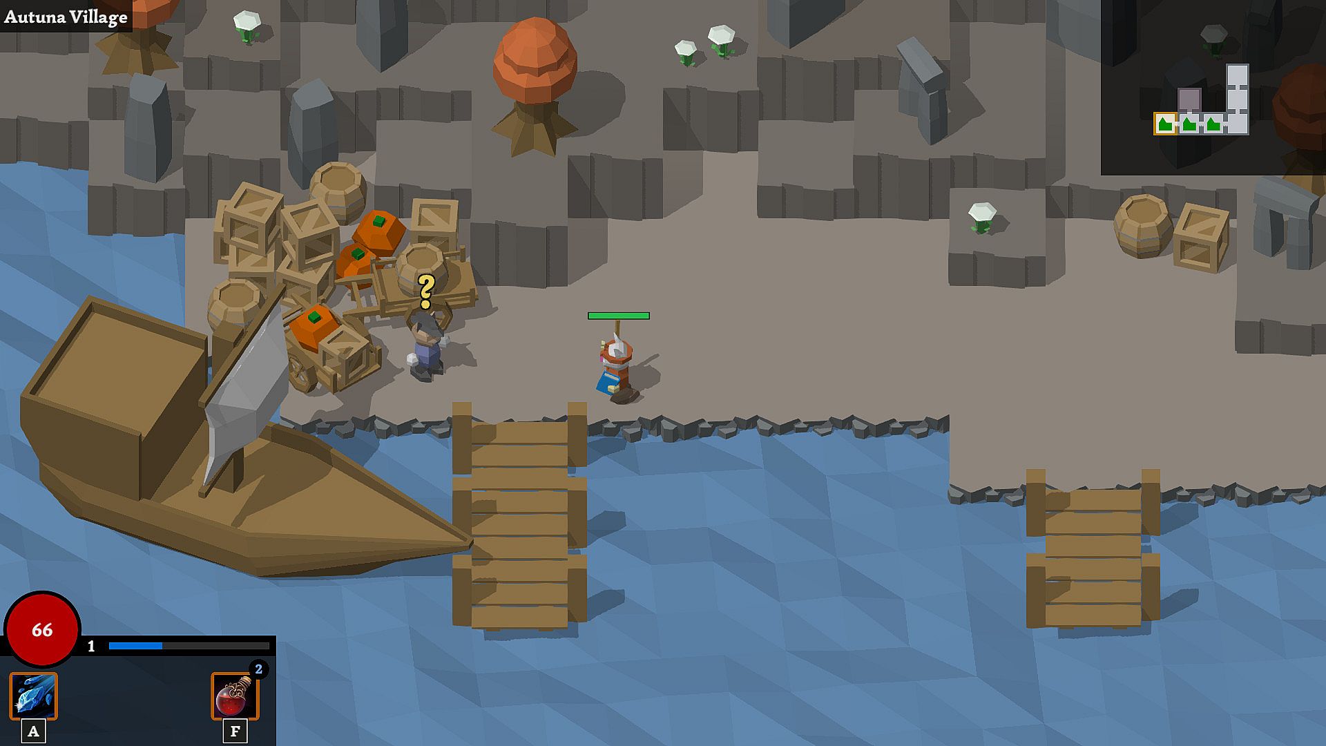 It is common among young shamans to go on their travels to enhance one's magical skills under the influence of foreign cultures. So, one day you decided that it was your turn to travel the world. You just wanted to take the next ship, but you soon realize that the harbor village nearby is mysterious: There are lots of pumpkins - and lots of dangers...