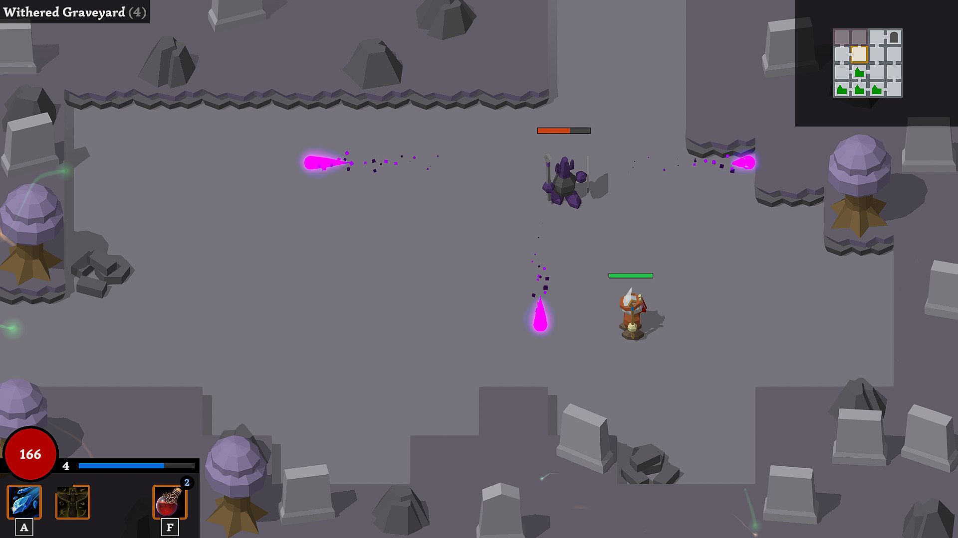 The minimalist art style helps to understand what is going on in combat. You won't lose track, even when things get heated and dozens of magical orbs fly across the screen.