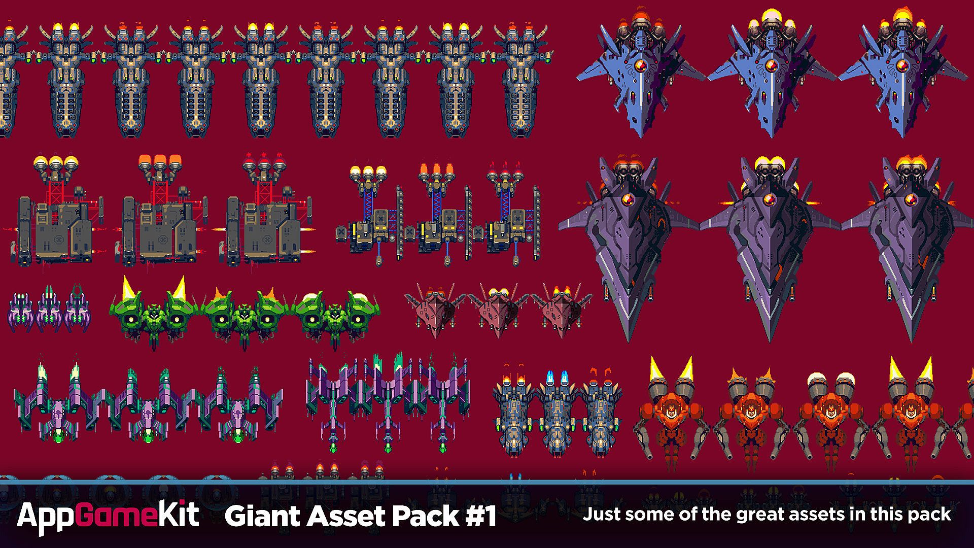 A library of over 400 megs of 2D art assets are at your disposal. Includes platformer graphics, space genre art, explosion animations, UI art, vehicles and much more