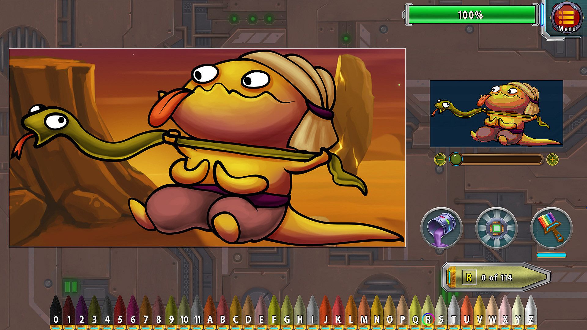 Paint by numbers and uncover the secrets of the lizards civilization!