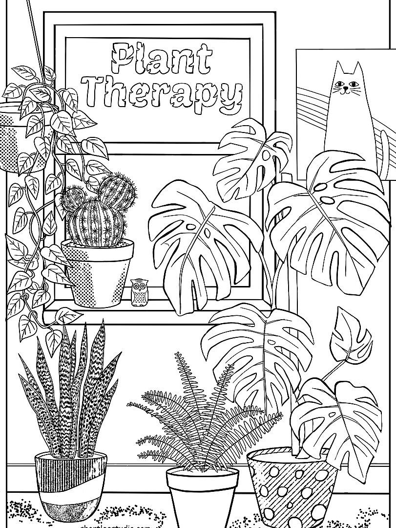 This is a 15 page coloring book inspired by our Plant Therapy game. Print out and enjoy a cozy night coloring plants in your new coloring book!