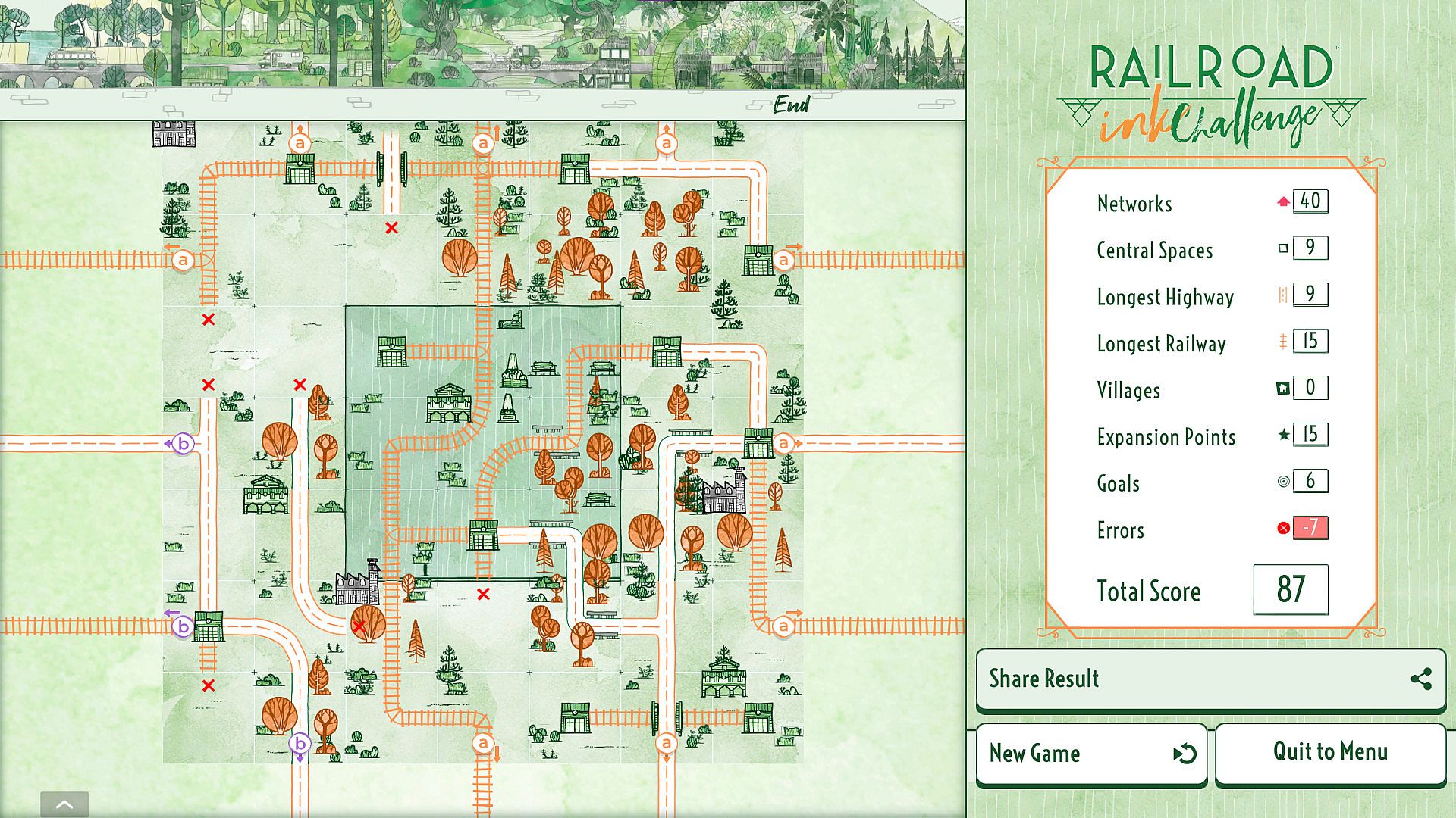 Build lush forests and interweave them with your regular networks to create beautiful scenic routes in a natural paradise. Build the biggest forest you can!