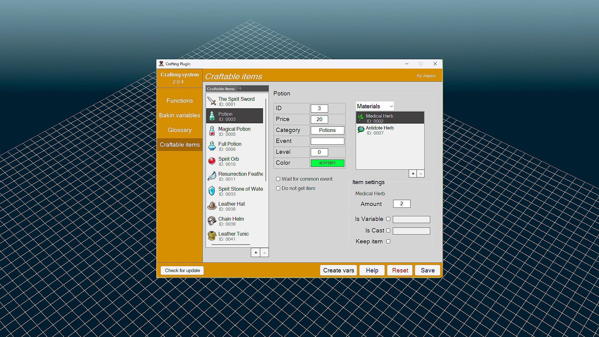 About RPG Developer Bakin Crafting System