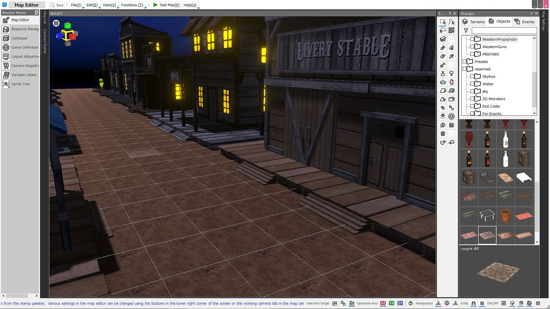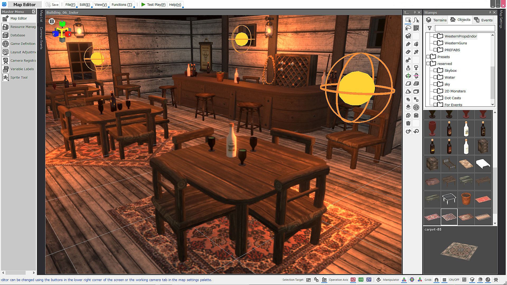 The Western Pack is a 3D model resource pack based on the unexplored areas of the American West in the late 19th century. All of the buildings and interior models are made up of detailed parts that users can combine to create their own unique exteriors and rooms. The pack also includes models of firearms, which are indispensable for Westerns, and a variety of accessories that decorate the rooms.