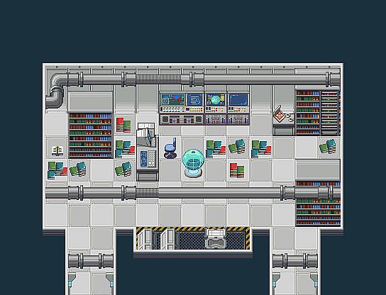 - Inside of a spaceship, including a navigation/bridge with a star map and computer terminals.