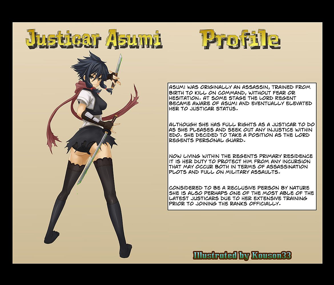 The graphic novel Swords of Edo is set shortly after the end of the visual novel game and follows, via a 240 page full color graphic novel, the adventures of the five Justicars of Edo, including Asumi & Kami (from the game) as well as Rei, Shia and Natsuko.