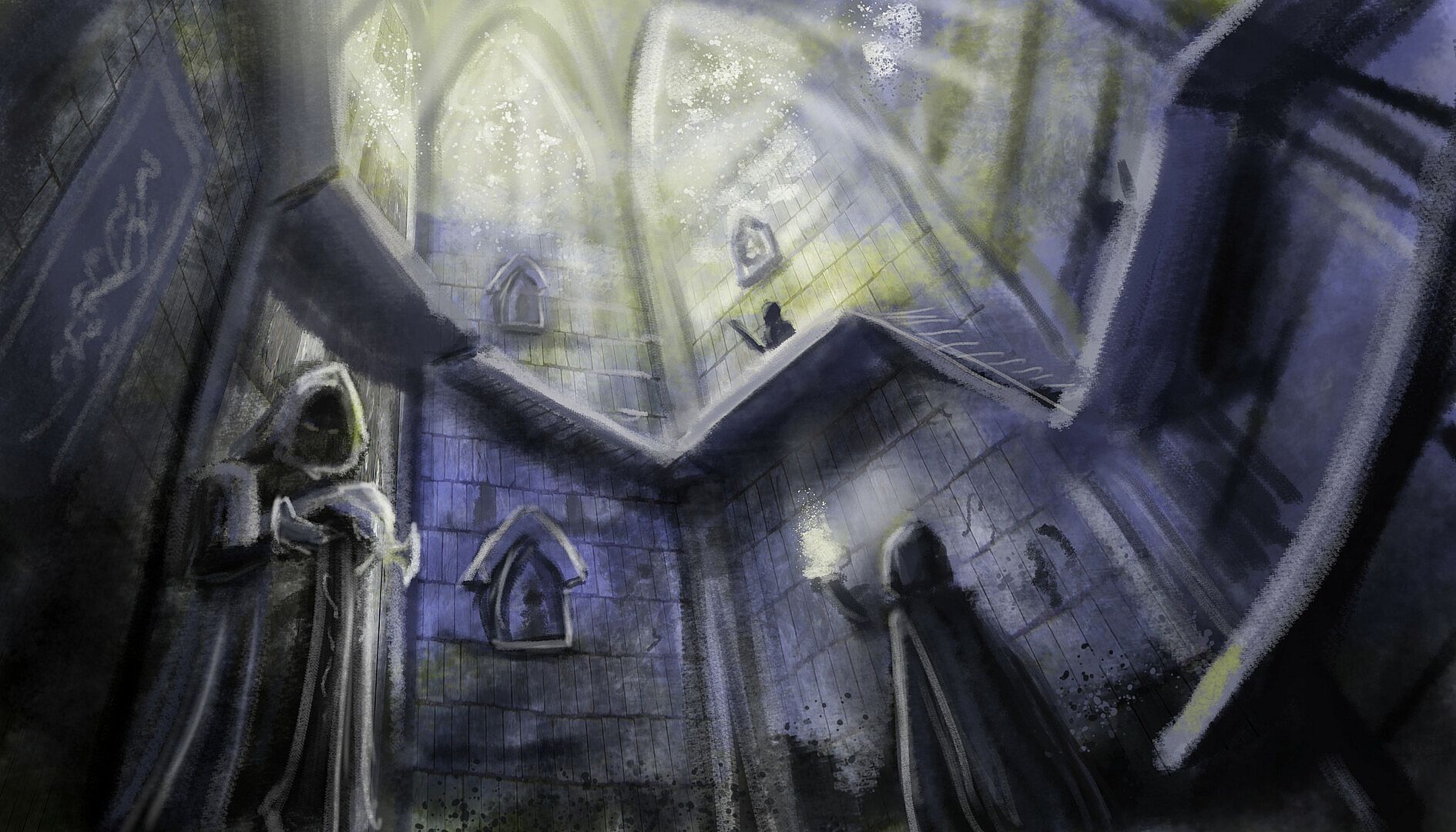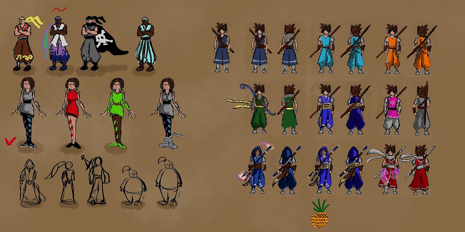 Various concept arts and work-in-progress elements