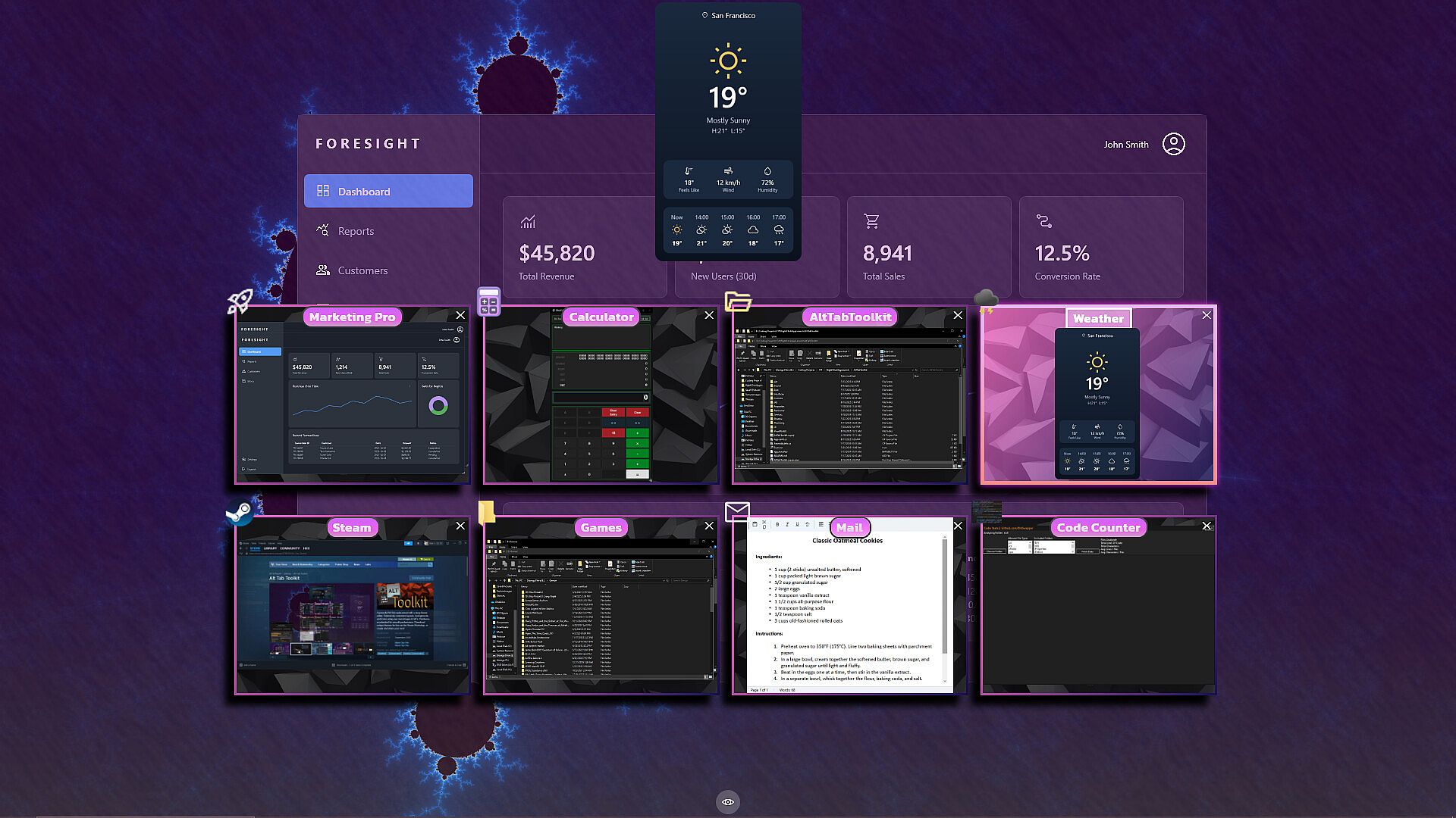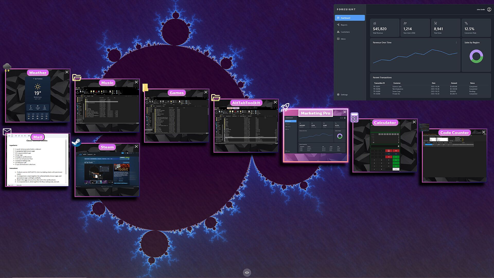 This application replaces the classic Alt-Tab switcher with a fluid, and deeply configurable interface.