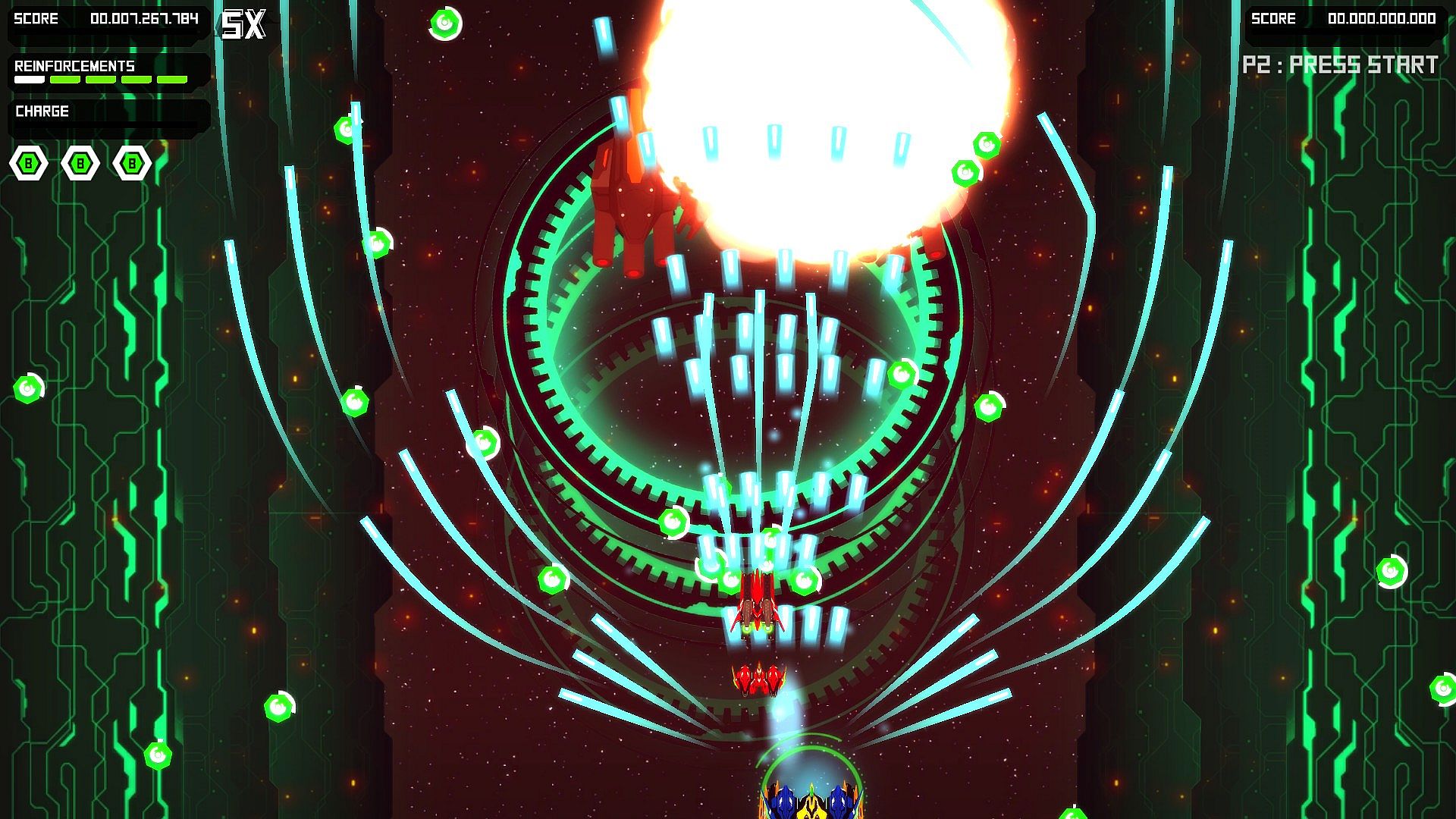 Customizable ship wings, weapons, colors, and cores. Suit your playstyle with 36 parts for each situation and for each boss battle