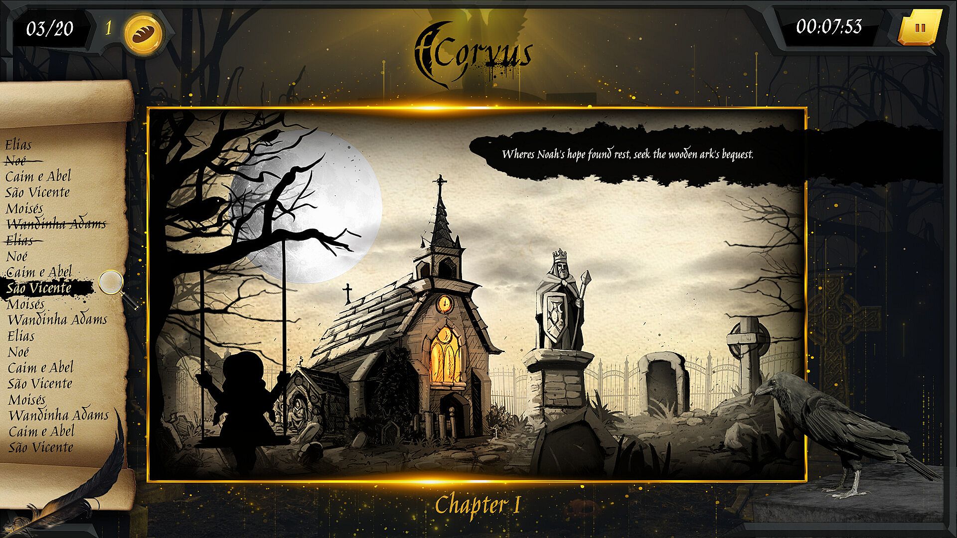 Progressively unlock the Raven’s Codex, a growing glossary filled with myths, symbols, and lore surrounding the corvid world.