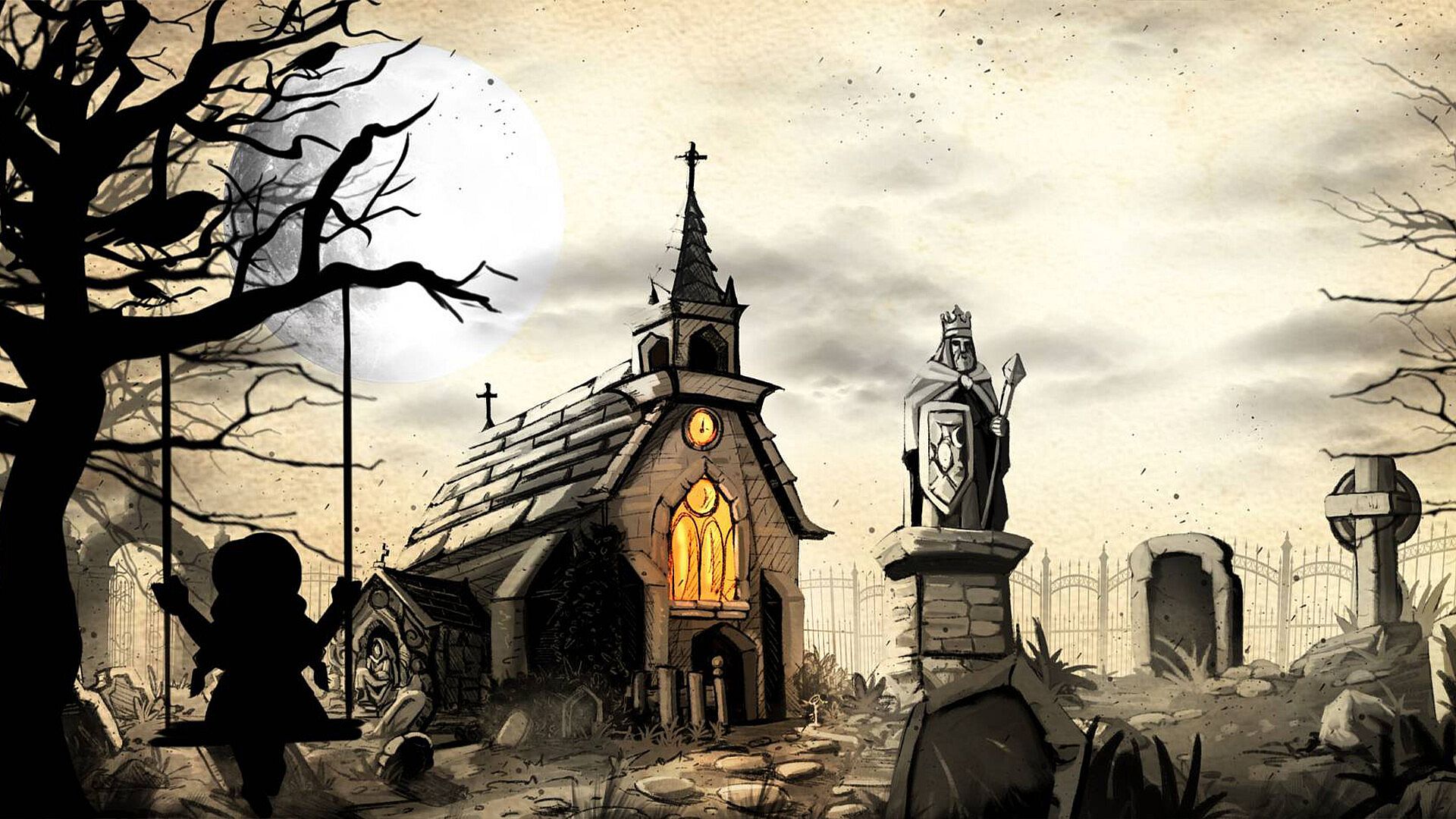 Once the image is complete, the scene comes alive. Ravens and crows glide across the screen, quick, unpredictable, and watching you back. Catch them all before they vanish into the mist.