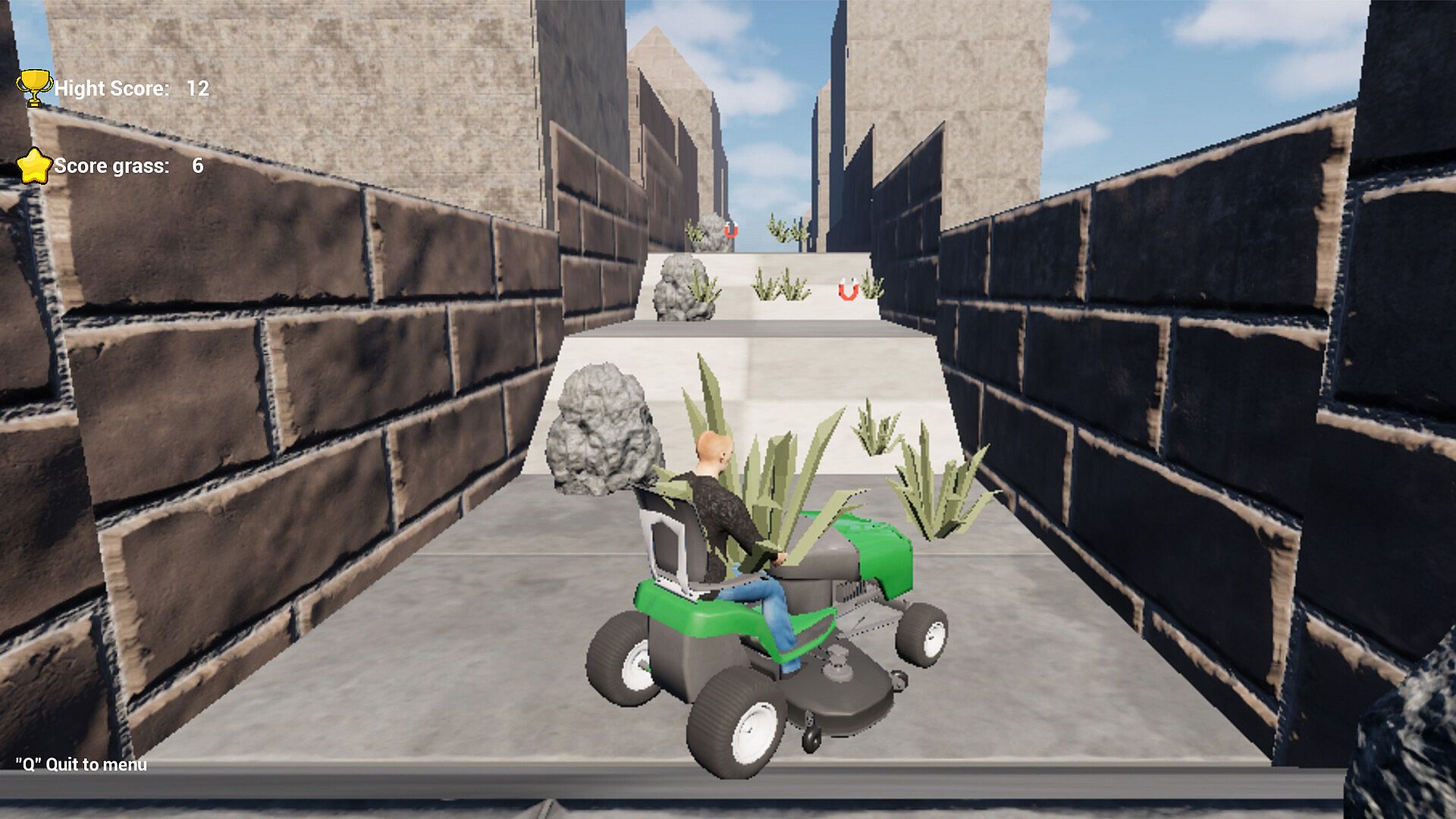 New part for lawnmower game series. Endless runner version where you drive lawnmower collect grass and use magnet to collect more in time. Avoid rocks which ends game and need restart. Speed is increasing so try to survive as long as can and as longer you play more steam achievements you earn. So be a fast player and try to survive over 5 minutes to collect all achievements