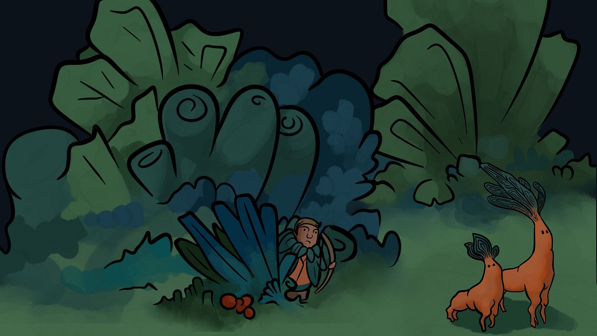 • Weird islands abound. Strange creatures roam these lands – antelope made of carrot, giant blueberry snails, bees made of banana and more. Colossus plants tower over the landscape, and magical mysteries can be found on every island. What will you do with these resources?