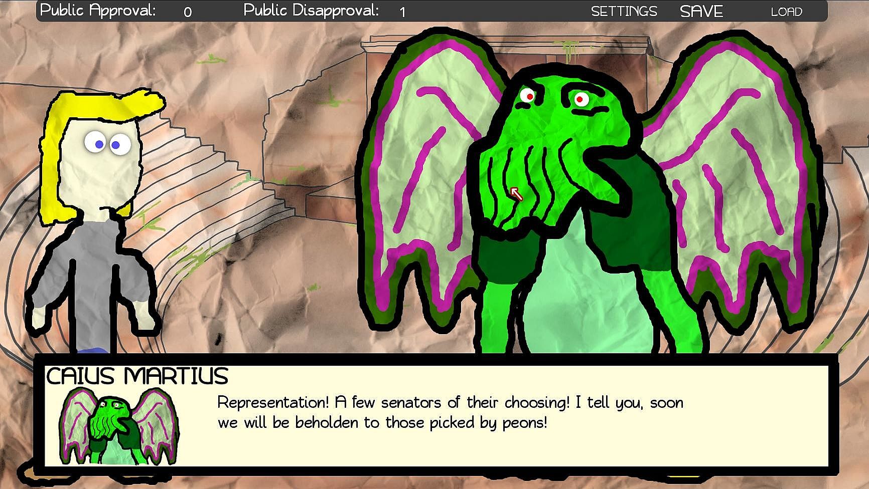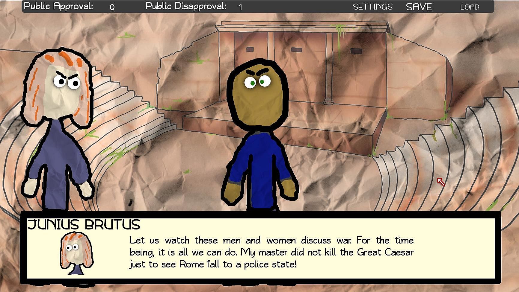 Enemies are around every corner. Old vendettas lurk in every shadow. War is never over. Navigate Caius through this poorly-drawn (boy, that joke is really overused by now) visual novel of battle, betrayal, and choices that you have to make every so often that may or may not throw the story in a new direction. A direction that Shakespeare never intended. Scary, right? Total Death of the Author right here.