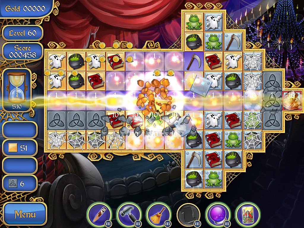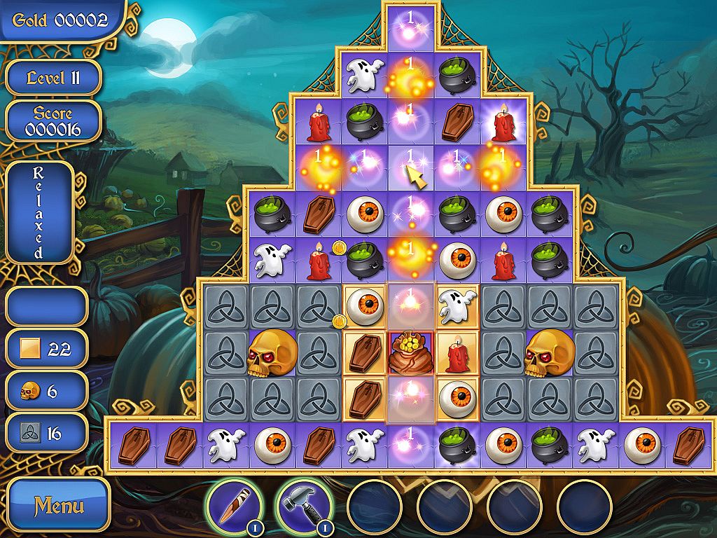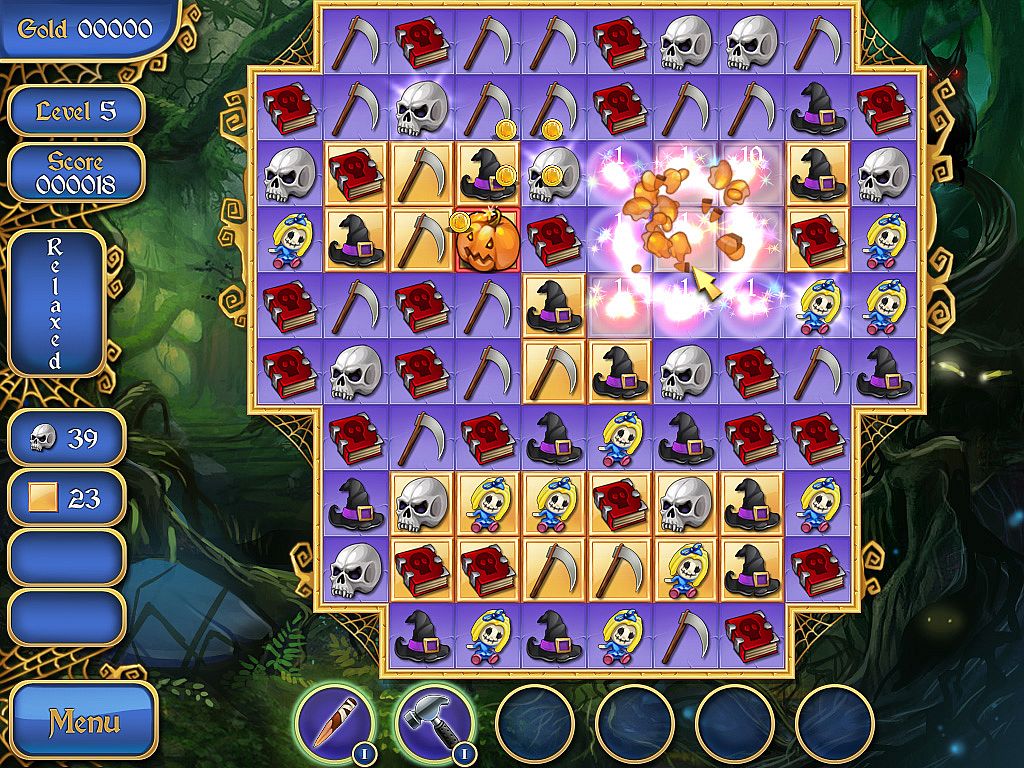 Uncover dark forces in Old Town through smooth match-3 gameplay. Match shapes to defeat evil, collect gold and powerups, and advance across 100 unique levels. Grab 13 bonus items like exploding pumpkins, garlic bombs, and silver bullets, plus 6 multi-level powerups such as silver crosses and holy water. Shop for spooky yard decorations that enhance your house and front yard while boosting gameplay. Choose relaxed or timed modes amid ghoulish graphics and classical music. Set backgrounds as desktop wallpaper on PC. Casual players enjoy this horror-themed puzzle with its easygoing yet eerie vibe.