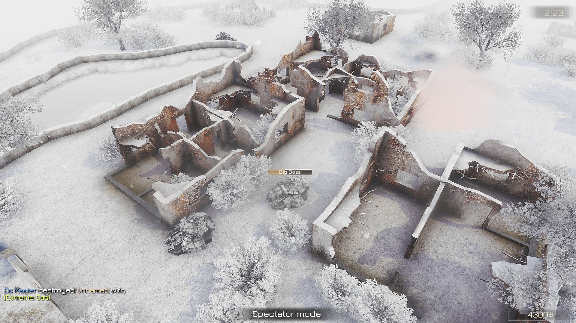 The player chooses the team. At the beginning of each round , the player has the possibility to entry a shop where he/she can buy equipment, arms and ammunition according to available money/finances. Money is possible to gain according to merits in battle. These are fairly divided according to how many HP the player takes from rival player, not according to number of destroyed units. The aim is to destroy all rival player´s units. The players can use surrounding buildings, plants and suitable type of camouflage in their favour. At the base camp it is possible to fill up the munition.