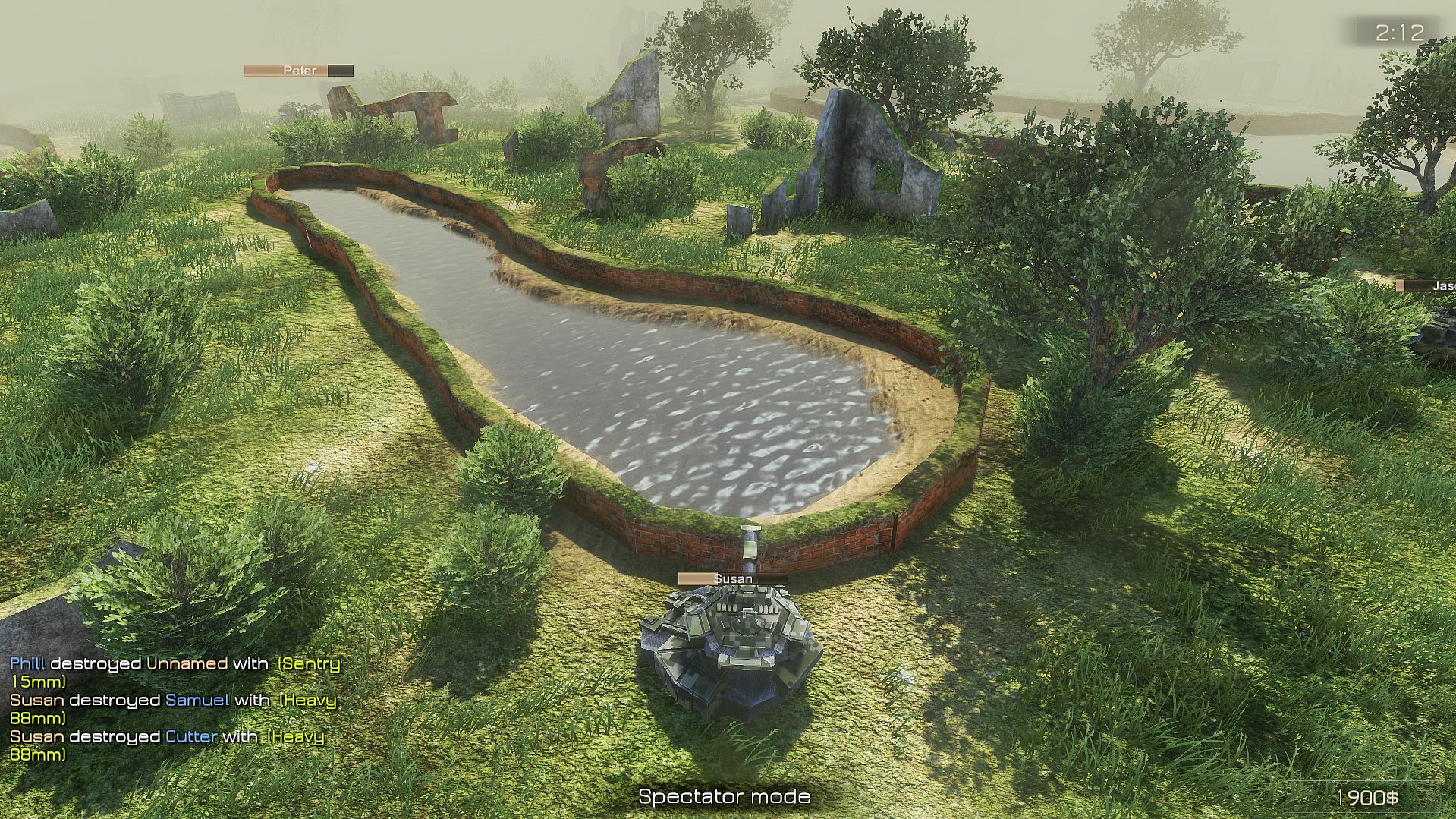 • Possibility to use bush as a cache, the enemy cannot see any GUI, only the tank model. Till after the player is hit, the name and status of the tank is displayed