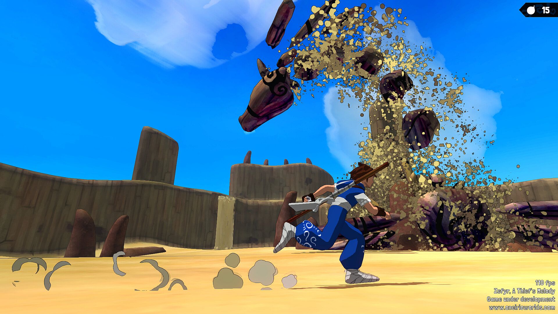 "Zefyr: Prologue" contains the first chapter of "Zefyr: a Thief's Melody". It's a tribute to old adventure games like "Beyond Good & Evil" and "Zelda Windwaker"; it features exploration, dialogs, fights, puzzles, collectibles and huge Boss battles, all wrapped in a colorful world with a contemplative and feel-good atmosphere.