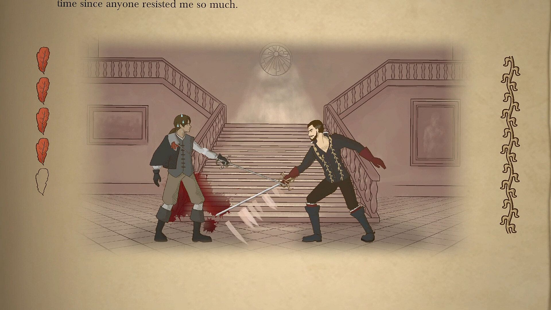 Take part in Athos' rise to glory, embodying him in his most tragic skirmishes! Just like him, you'll have to master the rapier and show your agility to be the best swordsman. Break through your opponent's defenses or strike back after parrying!