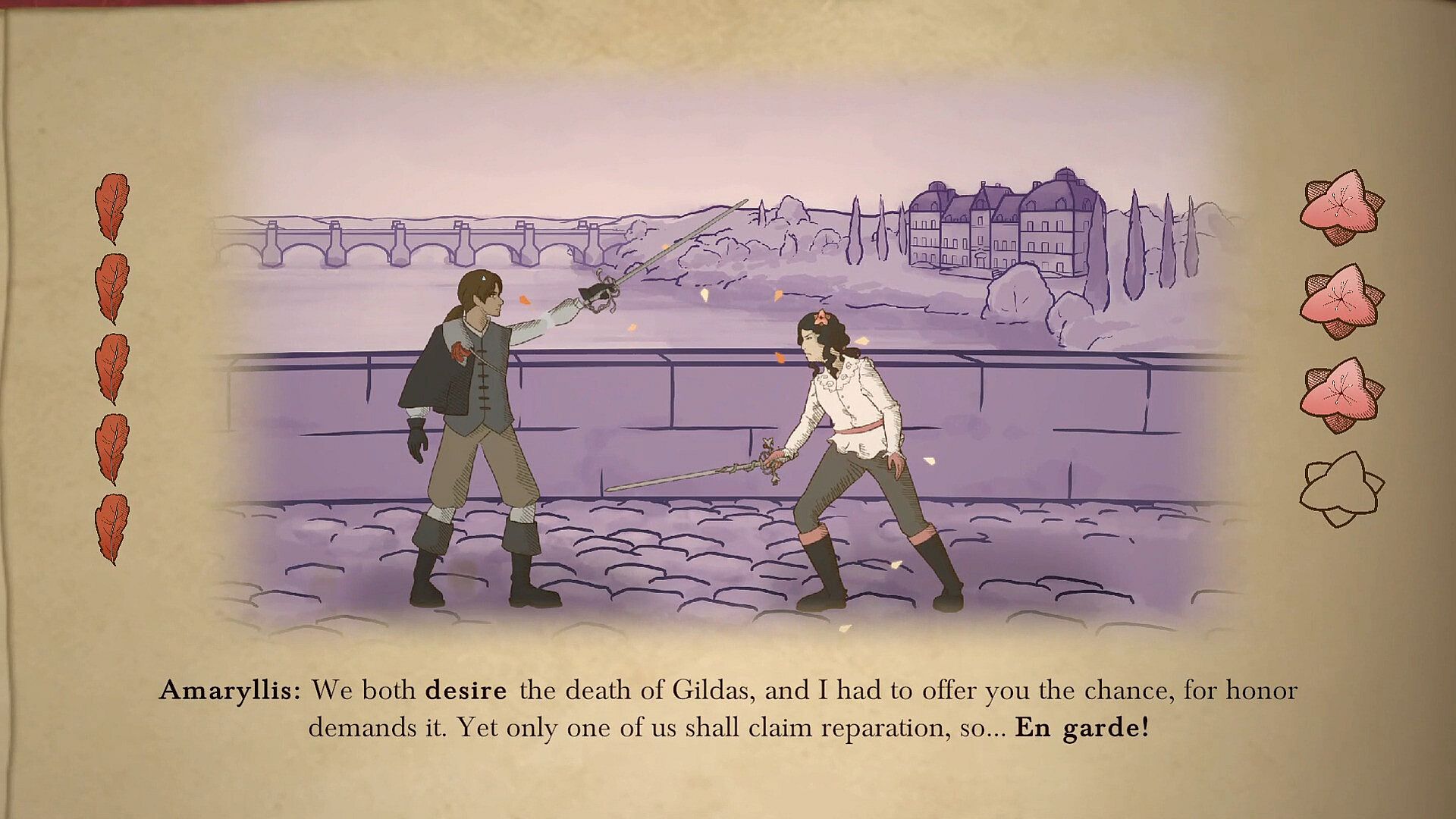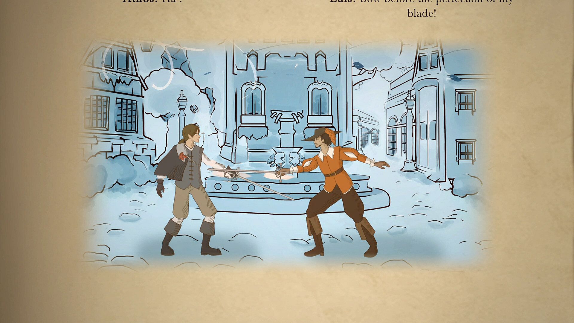 Discover a lively manuscript that tells the story of Athos as you embody him in his epic adventures. Athos' Code is a sword-fighting game that takes you to the heart of the quarrels of the French provinces in the 17th century.
