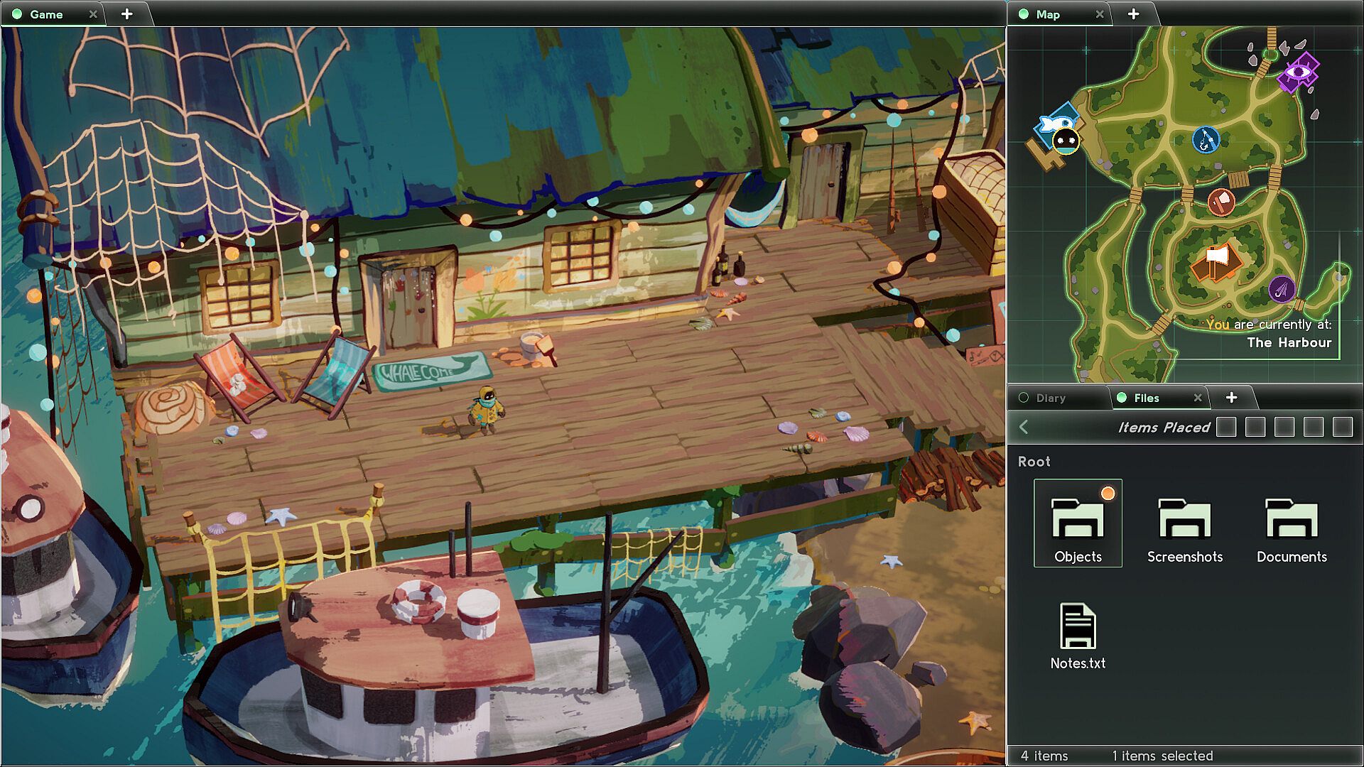 Each window provides a different way to interact with the environment: track your progression, scan and place items, install a camera to spy on the inhabitants, and more...!