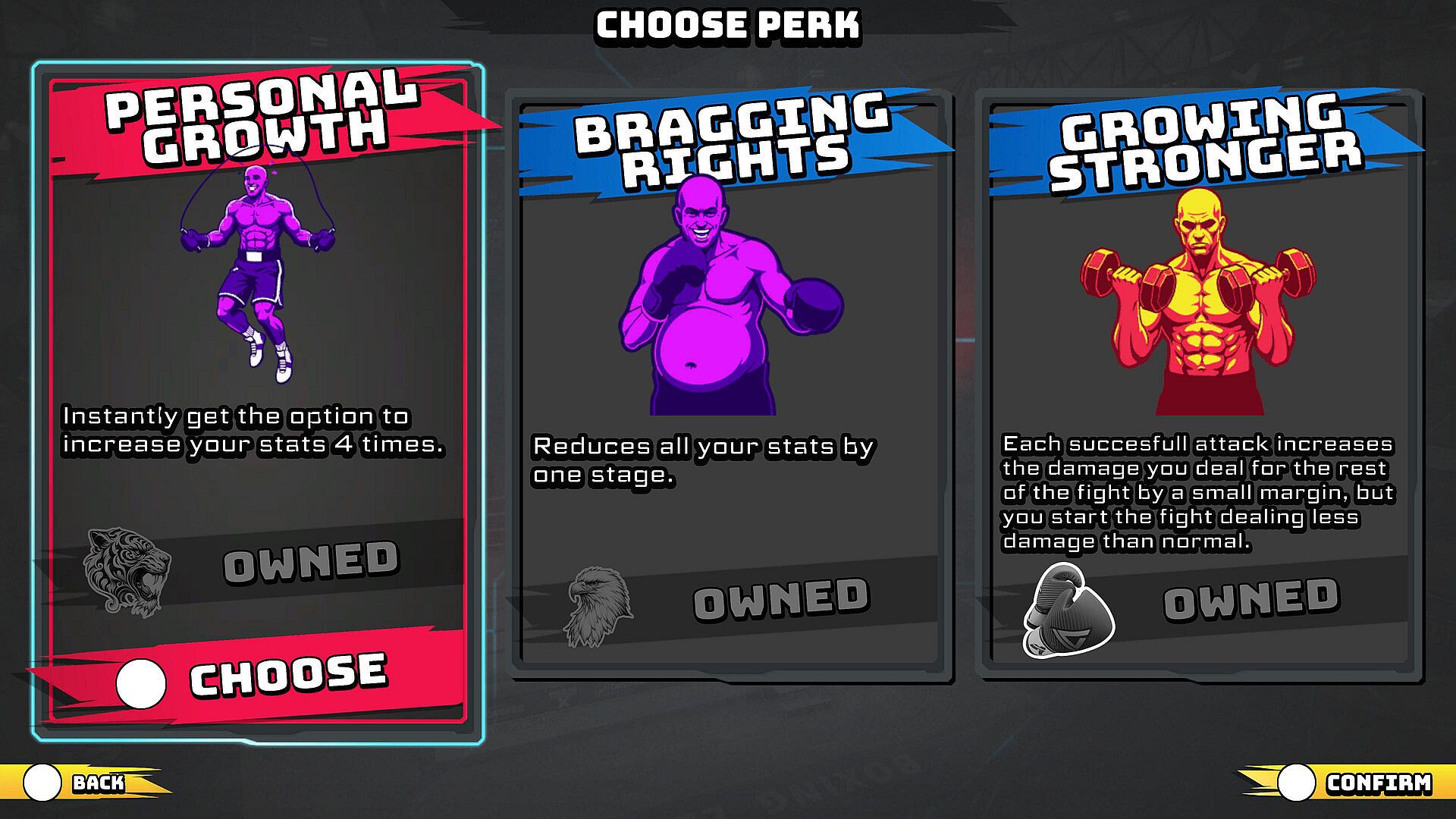 Knockdowns are dramatic and dangerous. When a fighter’s health drops to zero, they hit the canvas and the count begins. Get up in time and continue - but each knockdown permanently reduces your maximum health for the rest of the fight, making every recovery harder than the last. Fail to rise before the ten-count, and it’s a knockout.