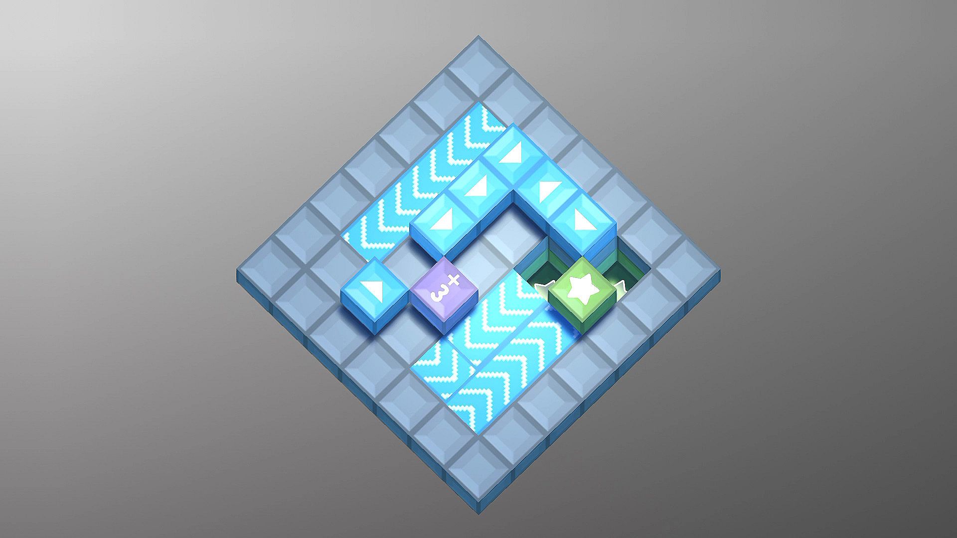 You'll start by selecting and moving blue cubes, which in turn push the green cubes in the desired direction. But beware—if a wrong cube is moved onto a target or a cube falls off the platform, it’s game over. Later levels will introduce new twists, like purple cubes that spawn additional green cubes and conveyor belts that transport your cubes to new locations. You’ll also have to navigate different elevations, moving cubes up and down to reach their goals.