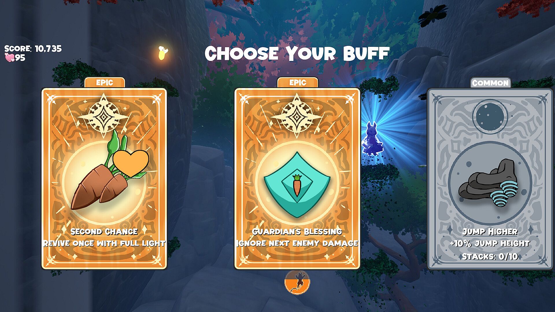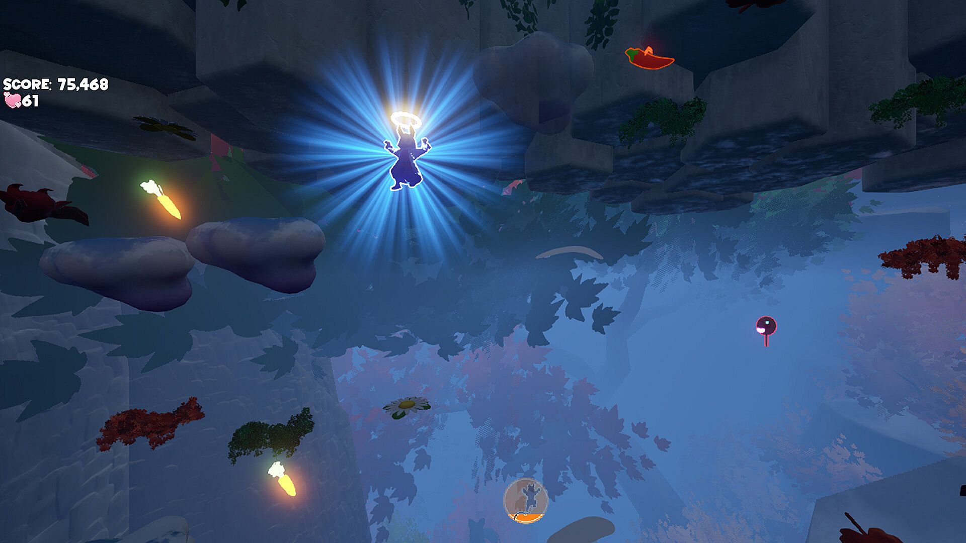 Once the light fades out Usagi will wake up, but the wish for exploring this weird dream is still alive. Eat glowing carrots scattered throughout the world to keep the light alive and continue your ascent through this surreal dreamscape.