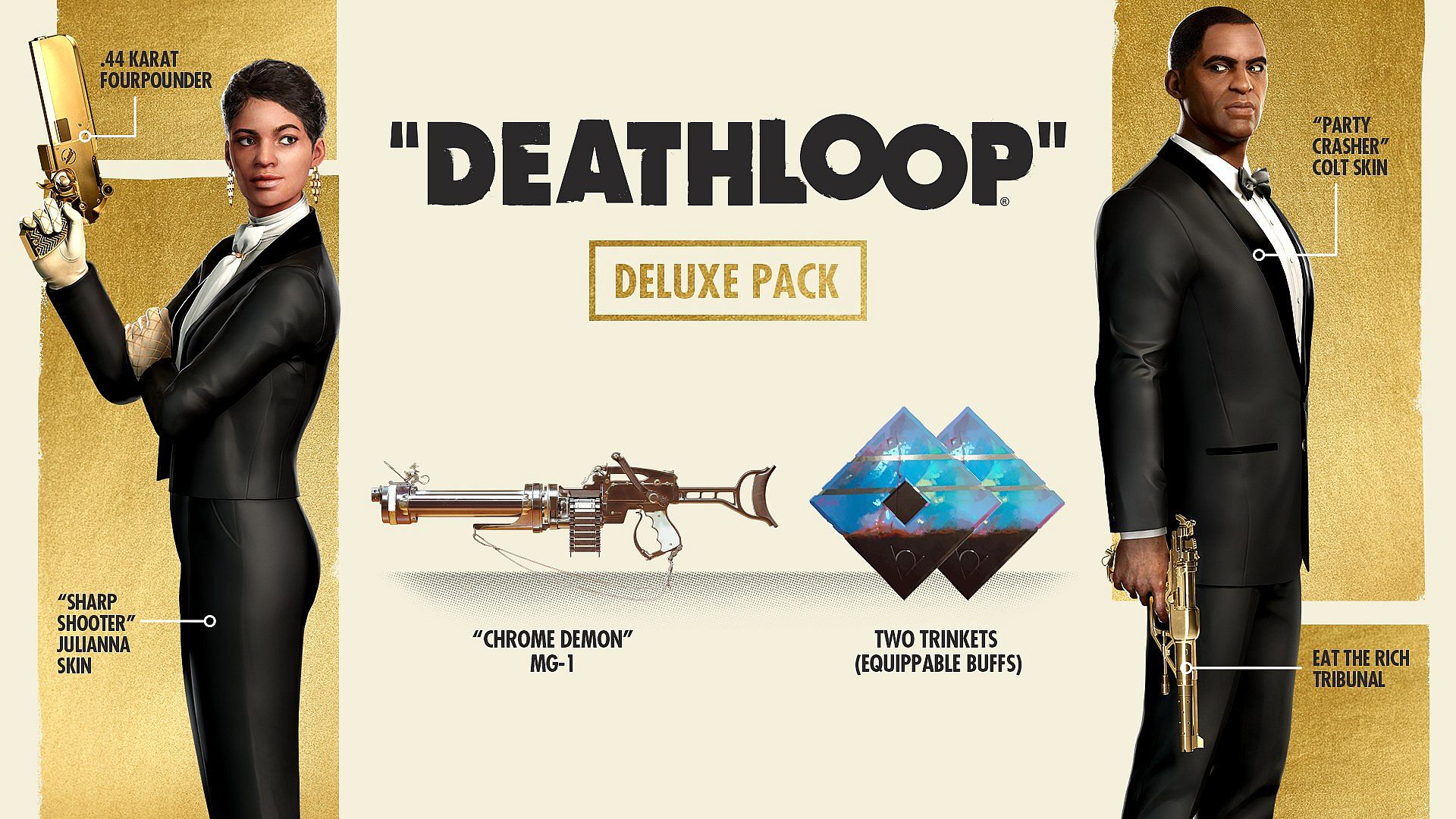 DEATHLOOP Deluxe Pack is a bundle available for PC. It was developed by Arkane Studios. Published by Bethesda Softworks. Genres: Action.