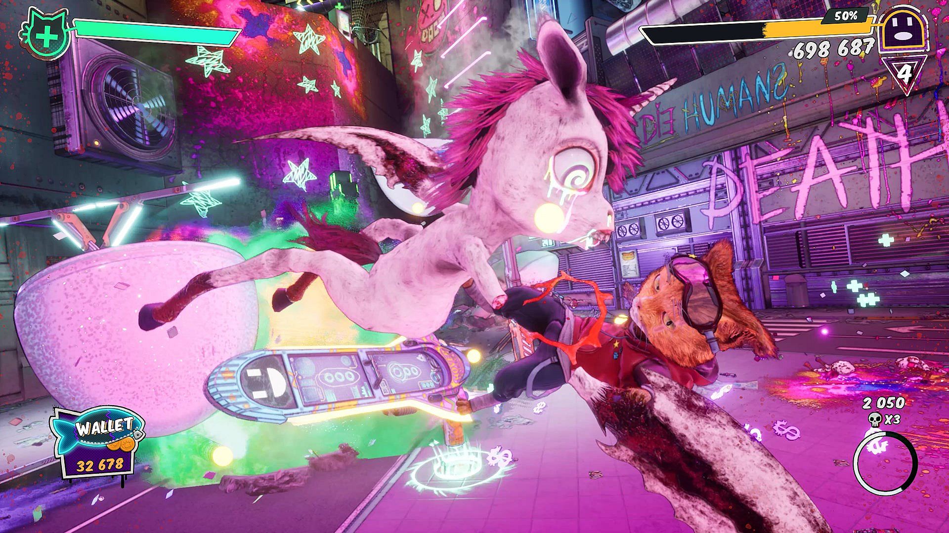 Humanity has been destroyed - and it's up to Gori, along with his deadly but wise-cracking sentient hoverboard, F.R.A.N.K, and morose A.I companion, CH1-P, to slay the evil Adorable Army with lethal combos. Fuelled by insatiable demand, 'Cool-Toyz Inc.' created 'Ultra Pets'. The ultimate companions that never hunger, never require bathroom breaks and are impervious to the ravages of time. Little did anyone expect the mutation that transformed these perfect pets into twisted toys straight from your nightmares, hell-bent on wiping out humanity. Master explosive weaponry and devastating combos in an epic battle to prevent the Adorable Army from conquering the galaxy, and rescue Professor Y, their missing creator and only human who showed Gori and his friends love. Push your combat and platforming skills to the limits as you fight your way through twisted landscapes filled with environmental hazards, razor-sharp adult humour and a bone-crunching, pulse-pounding soundtrack. These reluctant heroes must track down and obliterate the generals of the Adorable Army, and with the help of a wild cast of unlikely allies - discover the truth about Cool-Toyz Inc. and unravel the secrets of this thrilling, action-packed hack ‘n’ slash adventure. Get ready to unleash the cuddly carnage! PLAY AS A BADASS CAT - One of the last prototype synthetic pets, smuggled out of Cool-Toyz Inc before destruction, Gori is cute, cuddly, yet extremely deadly. WITH FRIENDS LIKE THESE… - Save the galaxy with a team of the unlikeliest heroes, from F.R.A.N.K and CH1-P to a host of unexpected allies, with a script packed with heart and adult humour that’s as razor-sharp as F.R.A.N.K’s blades! SLAY WITH STYLE - Battle the blood-thirsty hordes of the Adorable Army in fast-paced combat where your hoverboard is your weapon! Power slide, grind and spin to cause MAXIMUM carnage and high combo scores. LEVEL UP - From neon-drenched city streets and toy factories awash with deadly toxins, to twisted carnivals and the insides of arcade machines - each level is filled with lethal environmental hazards and mutated toys to push your combat and platforming skills to their limits. LOCK AND LOAD - This cat has claws… and a devastating arsenal of explosives, razor-sharp weaponry and unlockable moves to lay waste to the Adorable Army in the most brutal and stylish way possible. HUNT FOR SECRETS - Use your extreme hoverboard parkour skills to explore every corner of the level for collectables that unlock radical new filters, outfits and fur-styles for Gori! PACKED WITH GORE - Paint the town red with F.R.A.N.K’s blades as you slice and dice with gratuitous amounts of dismemberment - body horror and the most twisted toy designs you’ve ever seen! EXPLOSIVE AND SOUNDTRACK - Skate and slay out to an original bone-crunching soundtrack bursting with energy across multiple genres. --- Show the Adorable Army your FURY with the Chinese Dragon premium skin pack for Gori: Cuddly Carnage that adds : - A slick Dragon themed outfit For Gori that glows in the dark - A new shiny gold tented paint job for F.R.A.N.K - New effects for Gori’s shield. Download today and slay the Adorable Army in style!