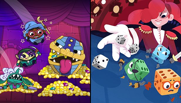 Dicey Dungeons Become a giant walking dice and battle to the end of an ever-changing dungeon! Can you escape the cruel whims of Lady Luck? Now featuring "Dicey Dungeons: Reunion", a free DLC with six brand-new episodes! In this fast-paced deckbuilding roguelike from Terry Cavanagh (Super Hexagon, VVVVVV), Chipzel, and Marlowe Dobbe, you'll fight monsters, find better loot, level up your heroes, and maybe even take down the Goddess of Fortune, Lady Luck herself. Balance your carefully planned strategies against the unknown of a dice roll. - Six wildly different playable classes: Warrior, Thief, Robot, Jester, Inventor and Witch. - Dozens of enemies, ranging from Vacuum Cleaners that want to suck your blood, to creatures from Irish mythology, to suave malevolent snowmen. - A catchy, upbeat and energetic soundtrack by Chipzel (previously, the musician from Super Hexagon). - Beautiful and adorable artwork by Marlowe Dobbe. - Procedurally generated for endless play-throughs. Roundguard Castle Springbottom is under attack! It's up to the Roundguard to save the king and -- more importantly -- recover his gold! Fling your hero into the face of danger and bounce off hordes of dangerously cute monsters to reach the bottom of the dungeon. With only one life, you'll need to learn how to navigate hazards, make strategic choices, and master your hero's skills if you hope to defeat the final boss. But don't worry, the Roundguard always bounces back! - Bouncy Fun: Intuitive pinball-physics-based gameplay like no other dungeon crawler. - Multiple Classes: Play as the Warrior, the Rogue, or the Wizard, each with their own unique skills, items, and cheeky sense of humor. - Randomized Dungeon: Each time you play, levels are procedurally generated, and quest events and elite monsters are randomly placed. - Permadeath with Benefits: When you die, you’ll have a chance to bring a special trinket with you on your next run. The more gold you grab, the better your chances to collect one of the most powerful trinkets. - A Cast of Oddballs: Chat with the castle’s colorful cast to pick up quests and learn why some rats want their king dead, what’s irritating the local teenage skeleton today, or what the Warrior will do if you can’t get to a bathroom quickly enough. - Lots of Loot: Over 100 items and trinkets, each with effects that present strategic choices and combo possibilities. - Show Off Your Skills: Compete on the leaderboards and try to master all the challenging, rule-bending relics.