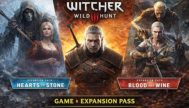 The Witcher 3: Wild Hunt Game + Expansion Pass is a bundle available for PC.