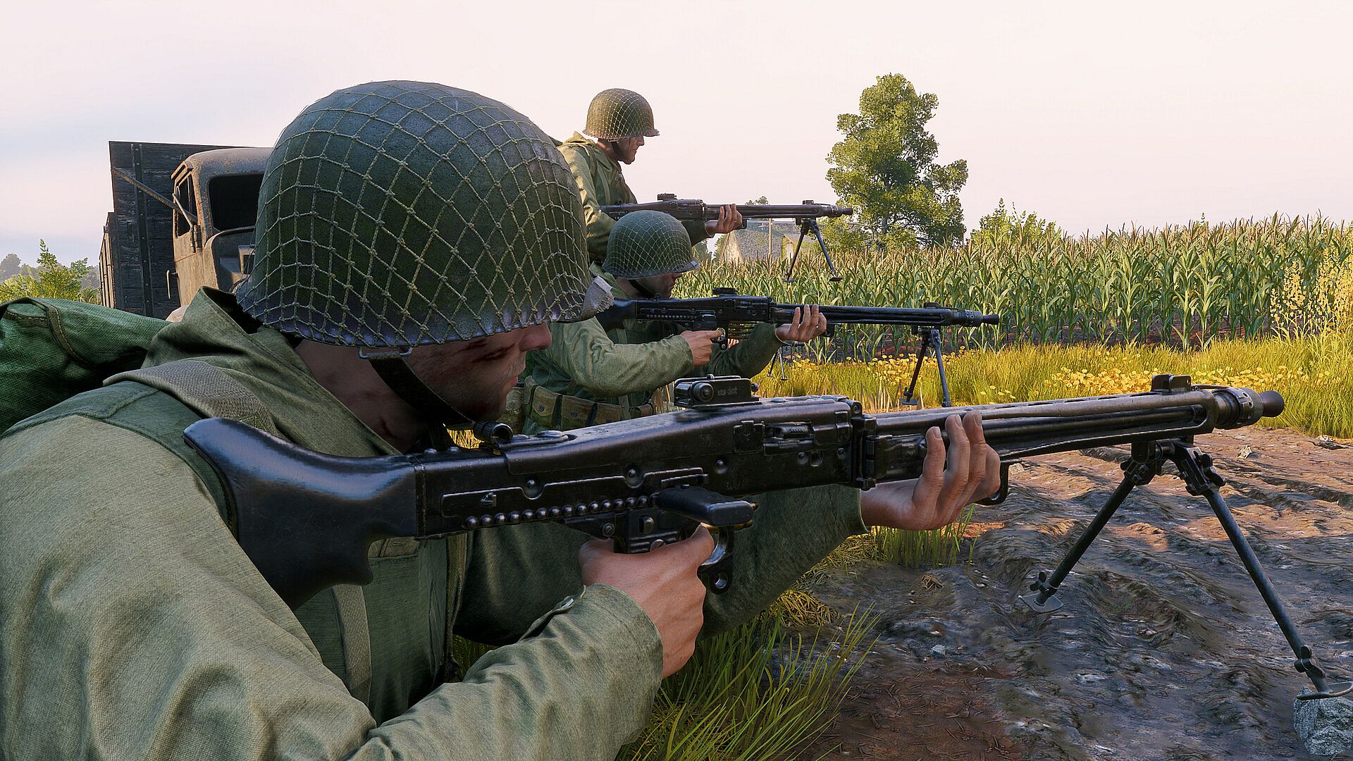 • A premium squad of four level 4 gunners and one engineer, equipped with T24 MG machine gun (Rank 5, USA)