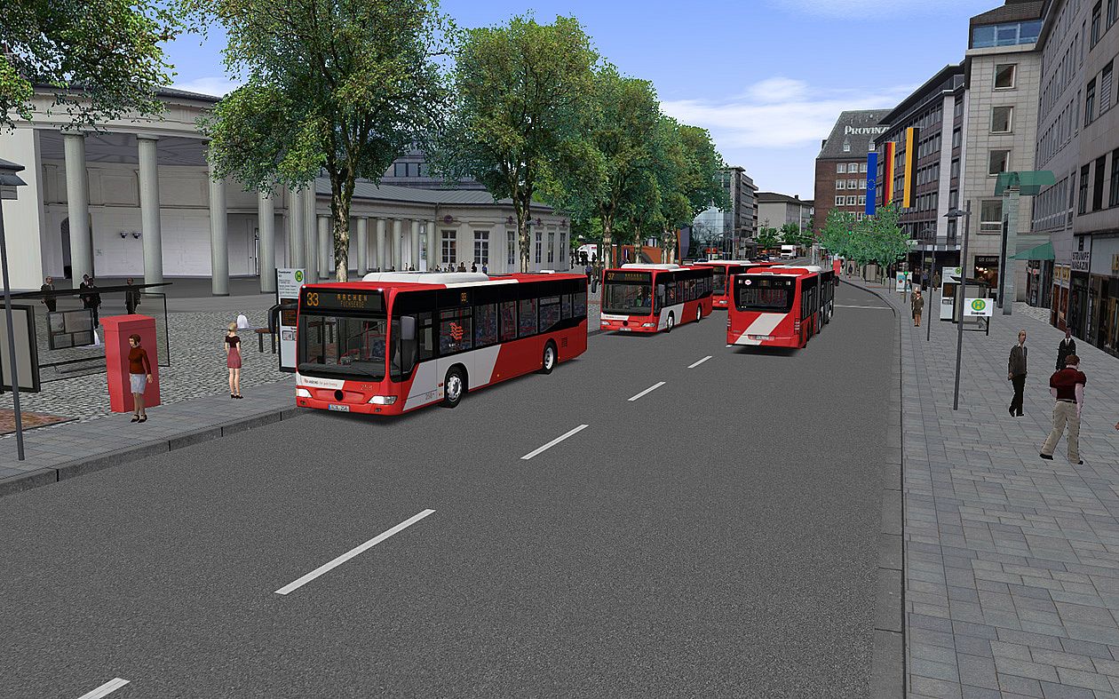 On those routes, the player has three vehicle models at his disposal based on examples from the ASEAG: The 12 metre “O530”, its 18 metre articulated version „O530G“ and the 19.5 metre high-capacity articulated bus „O530GL“. Both the models and the sounds are created with recordings from their real-worlds counterparts.