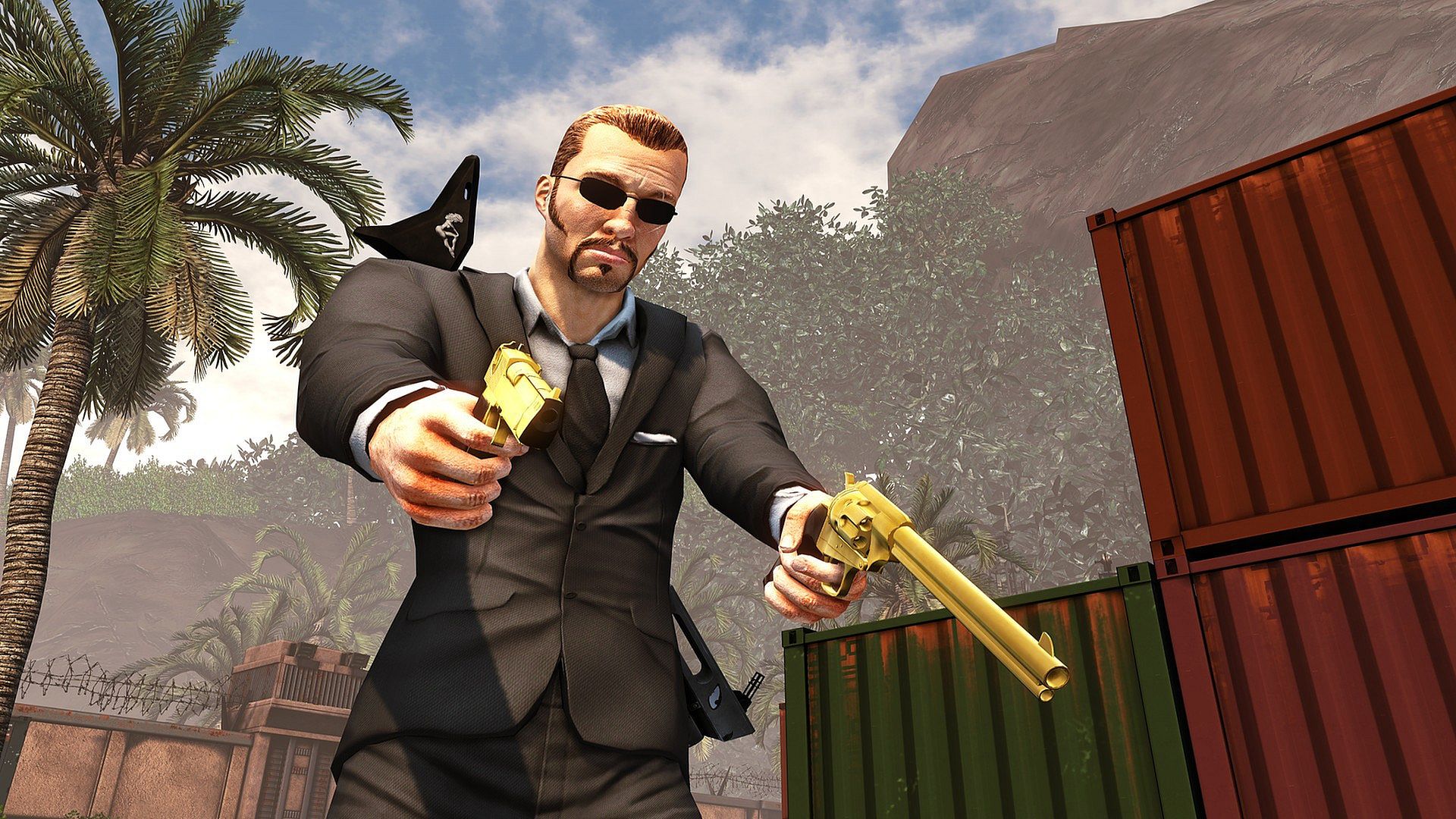 The Trapper gets a black tie ensemble and a new set of golden guns with this skin.