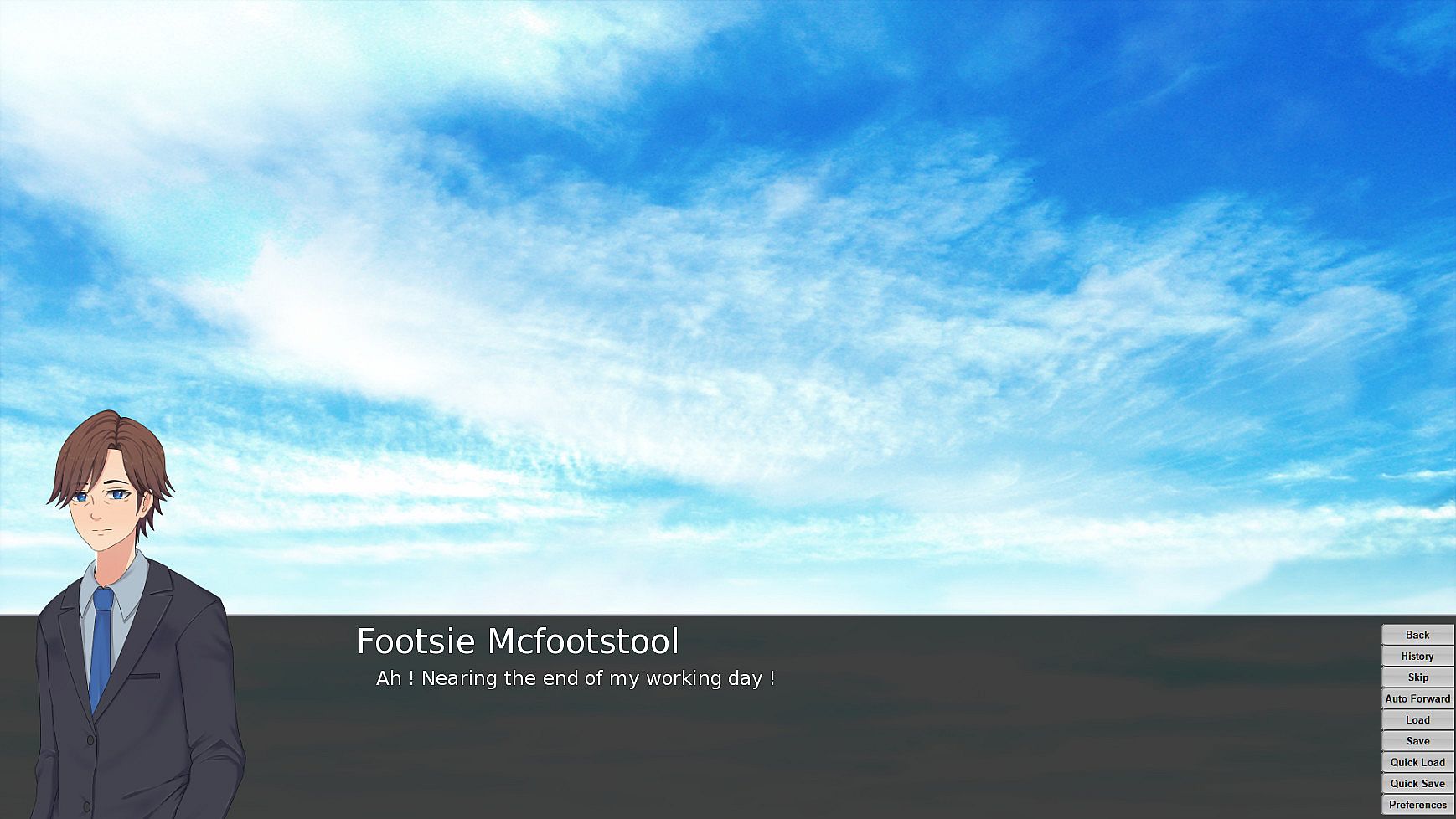 This is a very short, comedic TEST visual novel, designed as a test for both writing visual novels (originally with VN Maker and then Ren'Py) and dealing with Steamworks, as well as being used as a testbed for anything new.
