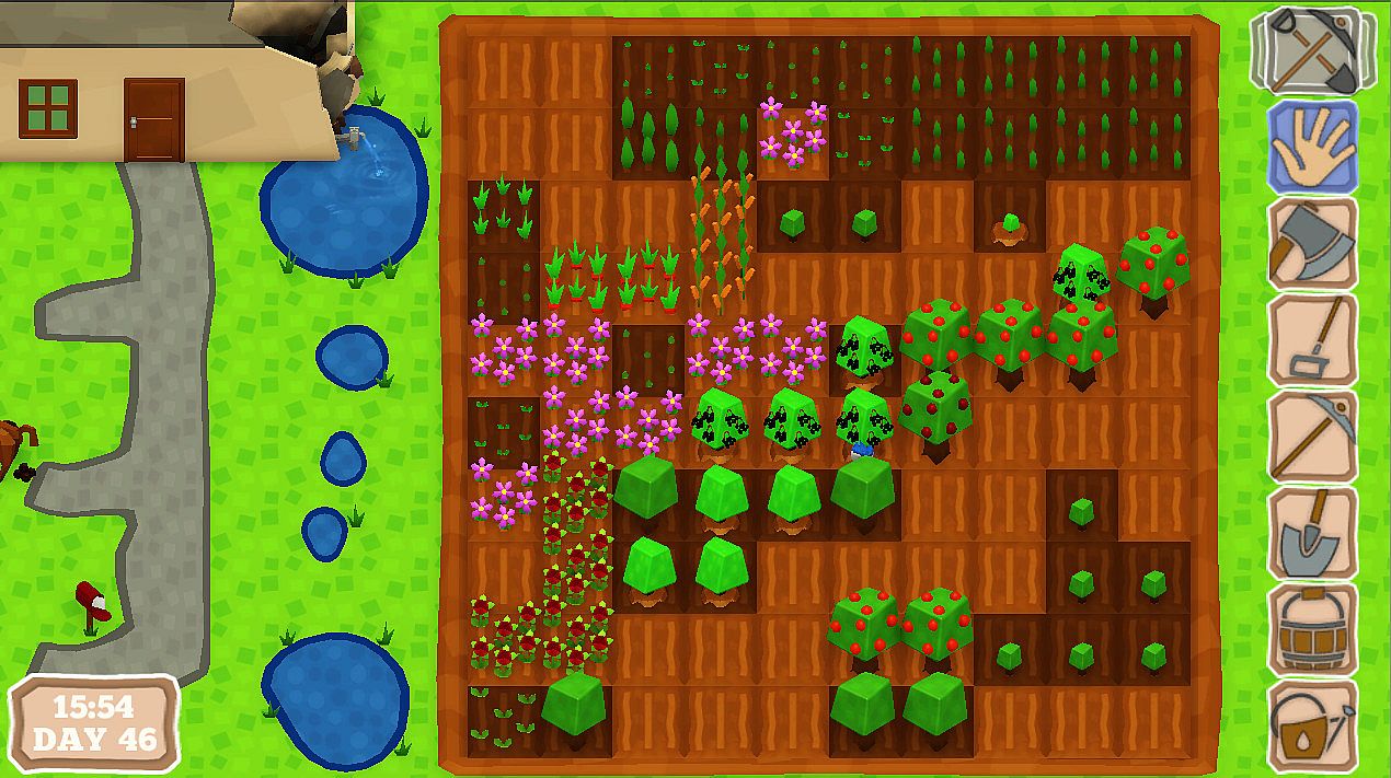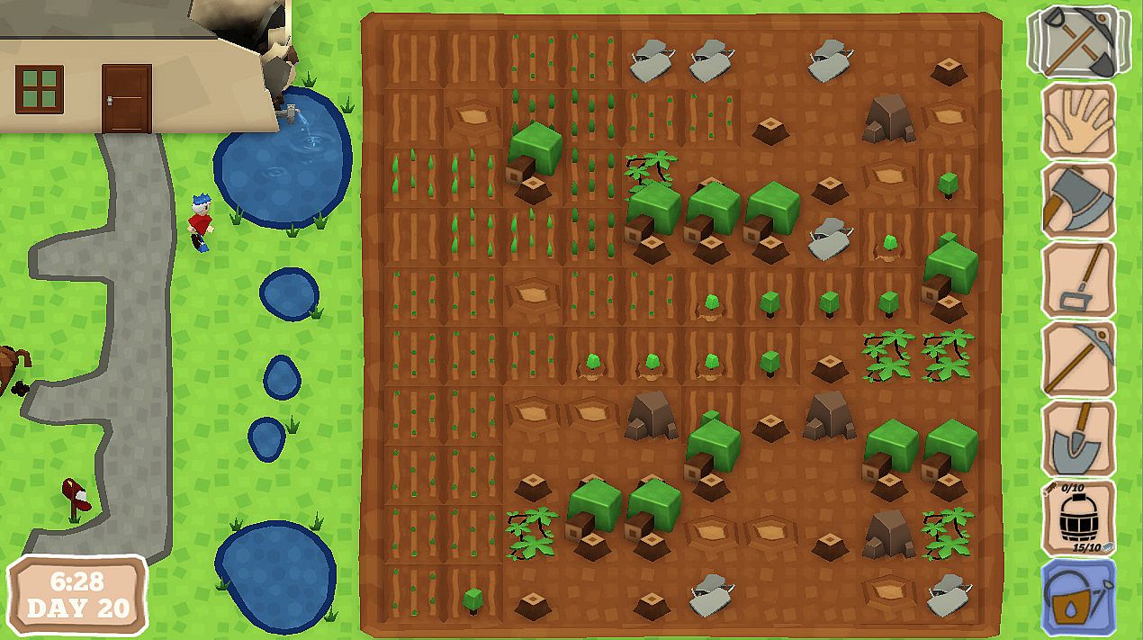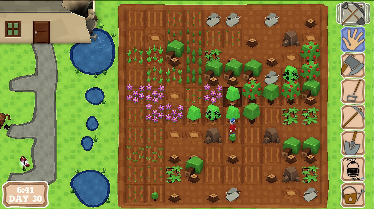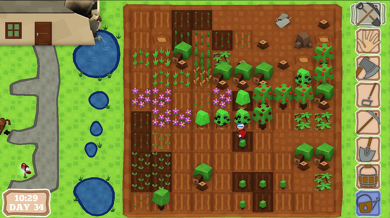 - Work the land with your hoe, shovel, axe and more! Unlock & craft 6 specialised tools to help you farm more of your land!